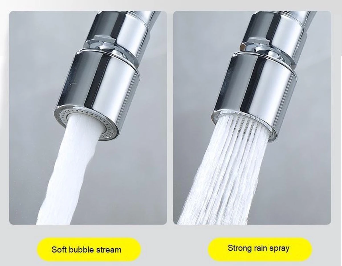 Met de innovatieve kraankop kun je tot wel 30% water besparen. De waterbesparende kraankop heeft een rotatie van 360 graden waardoor afwassen of de gootsteen schoonmaken veel gemakkelijker en sneller gaat. De kop heeft twee standen. Je kunt kiezen voor een hogedrukstraal, ideaal bij bijvoorbeeld aangekoekte pannen. De ‘normale’ straal is handig voor het dagelijkse gebruik. De kraankop heeft een uitwendig/inwendige schroefdraad.