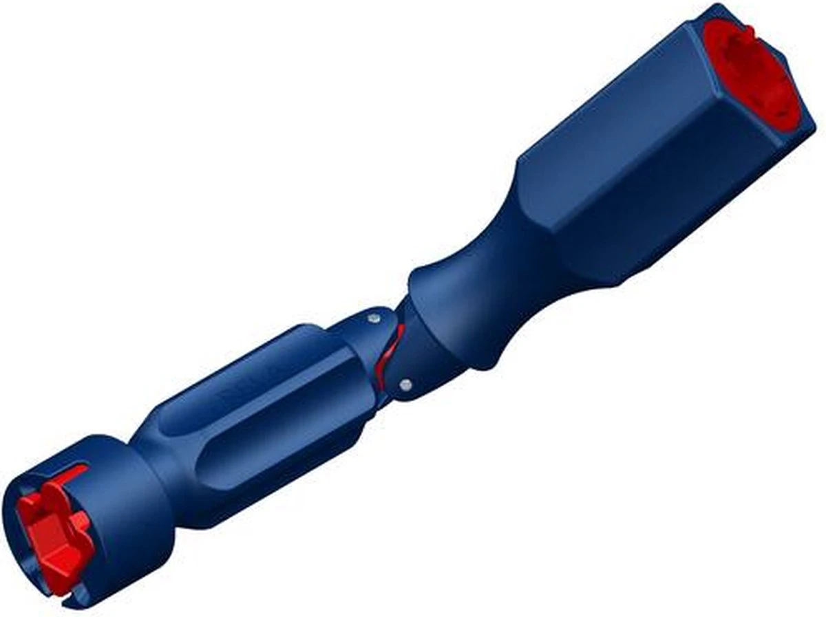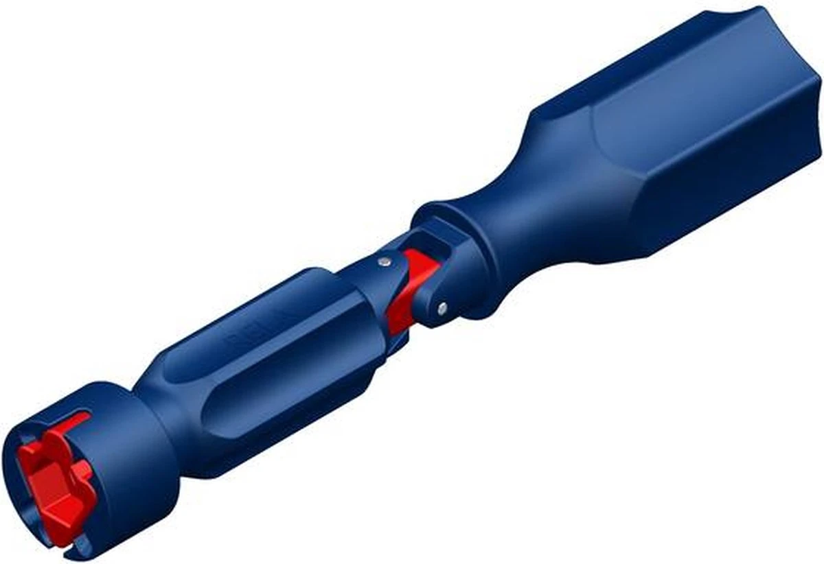 Deze sleutel is een allrounder voor het los- of vastdraaien van schroefverbindingen. De montagesleutel heeft een rode click-change insteek voor 10 en 13 mm sleutelmaten. Er worden in totaal 19 verschillende toepassingen aangeboden. Dankzij het scharnierende gewricht is werken op moeilijk bereikbare plaatsen geen probleem.
