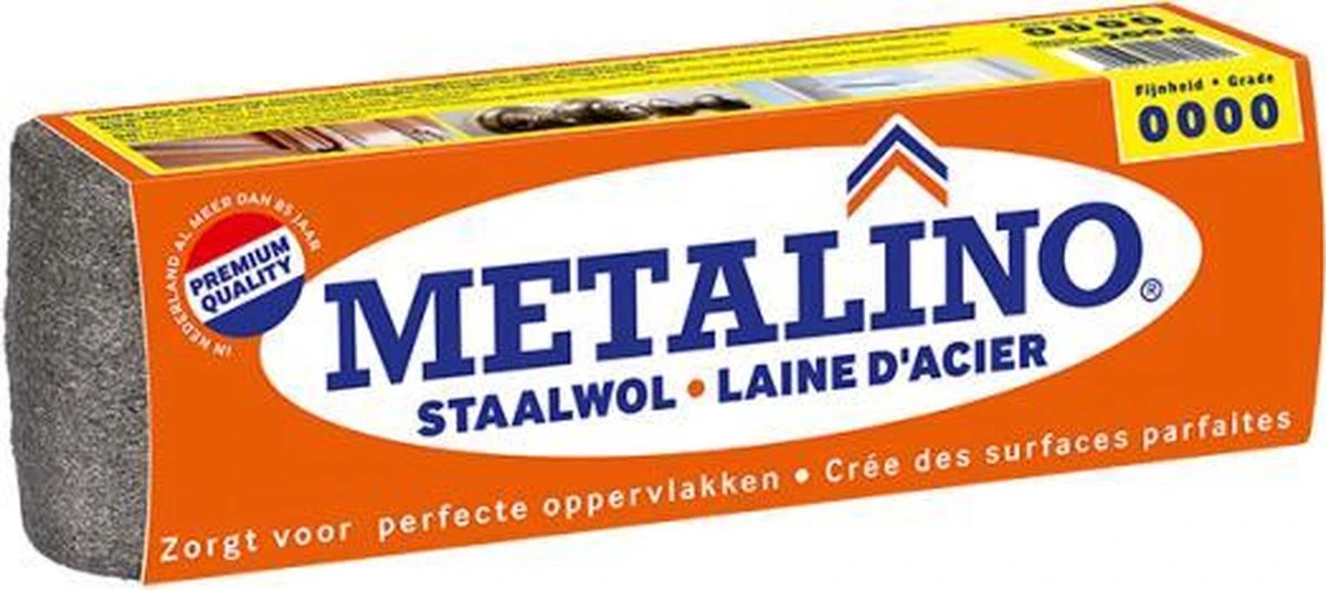 Deze extra fijne staalwol wordt gebruikt voor het reinigen en polijsten van alle soorten ongelakte metalen oppervlakken zoals aluminium, RVS, messing en koper. Staalwol 0000 wordt ook gebruik om in de was gezet of geolied hout te polijsten en watervlekken van gewaxt hout te verwijderen. Tevens kun je met Metalino staalwol 0000 glanzende houten oppervlakken matteren. Van alle typen staalwol is deze staalwol 0000 de fijnste soort.