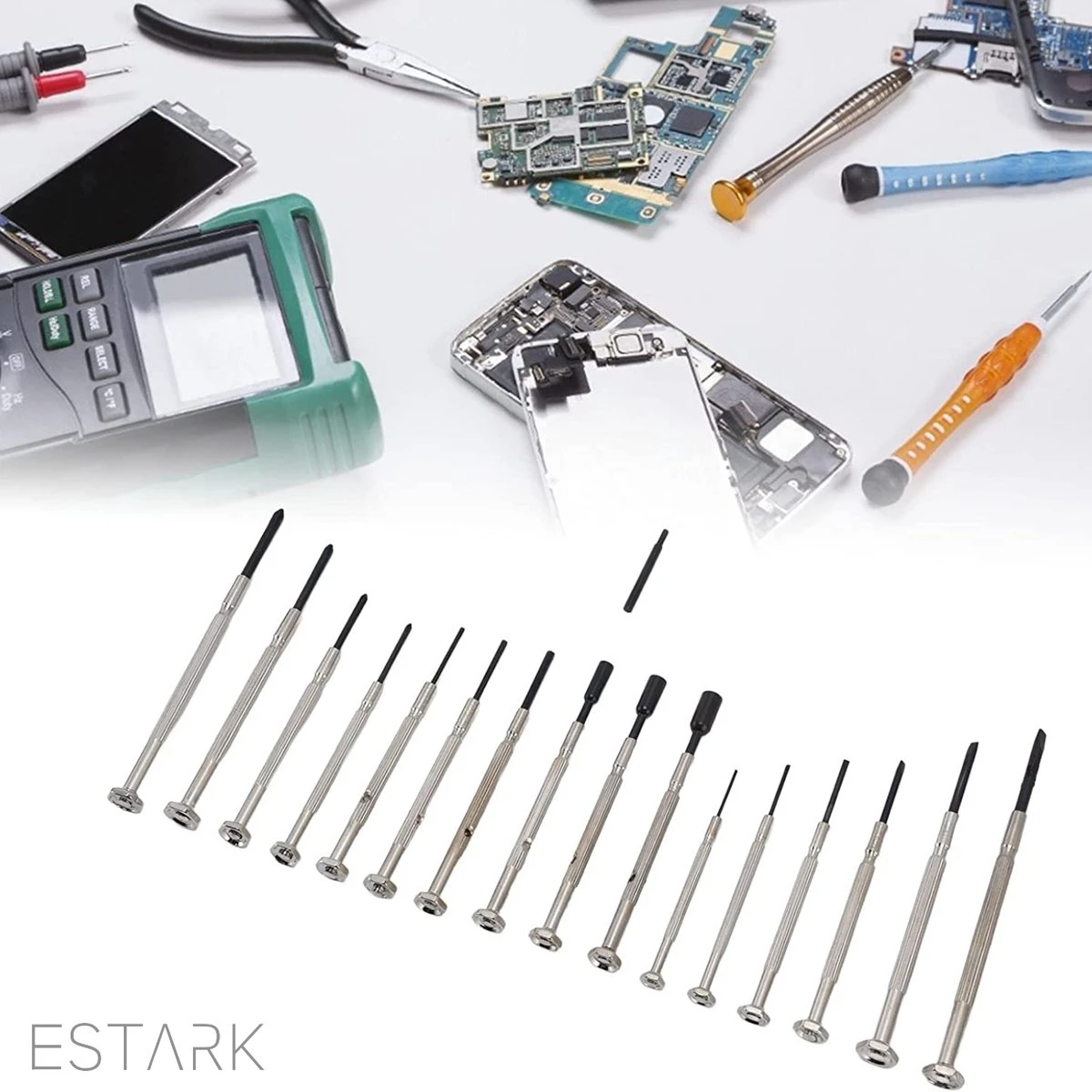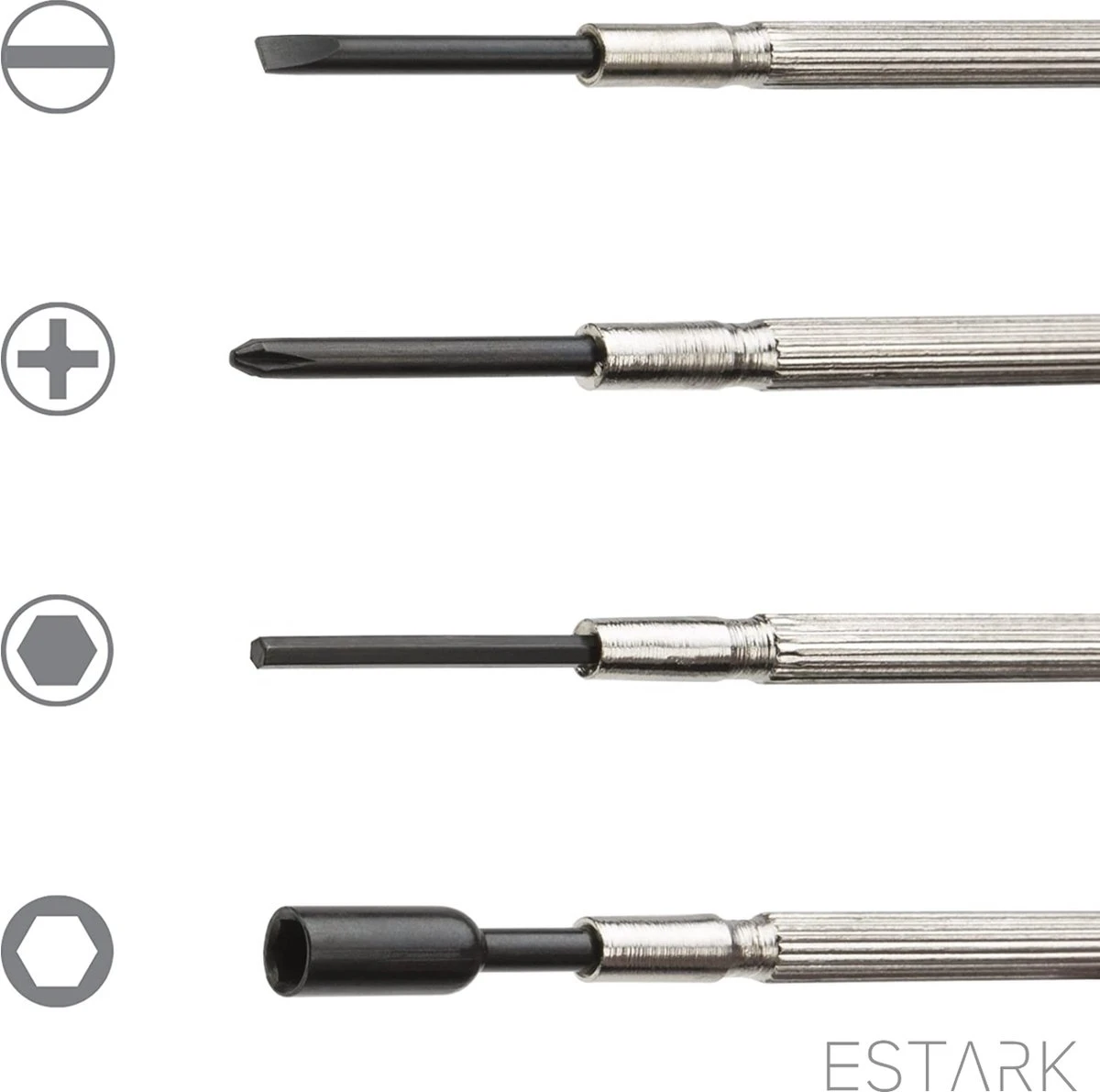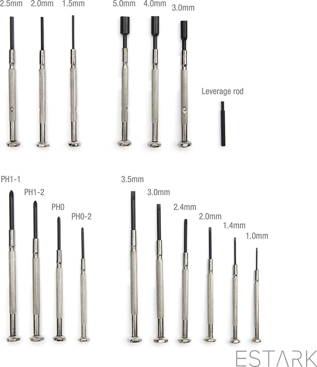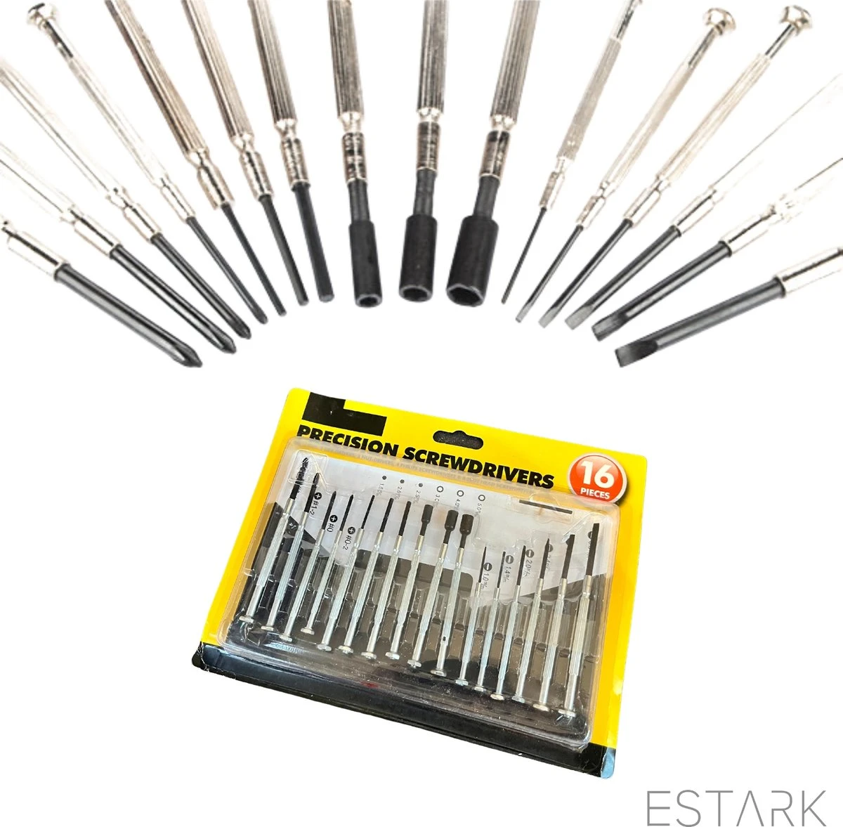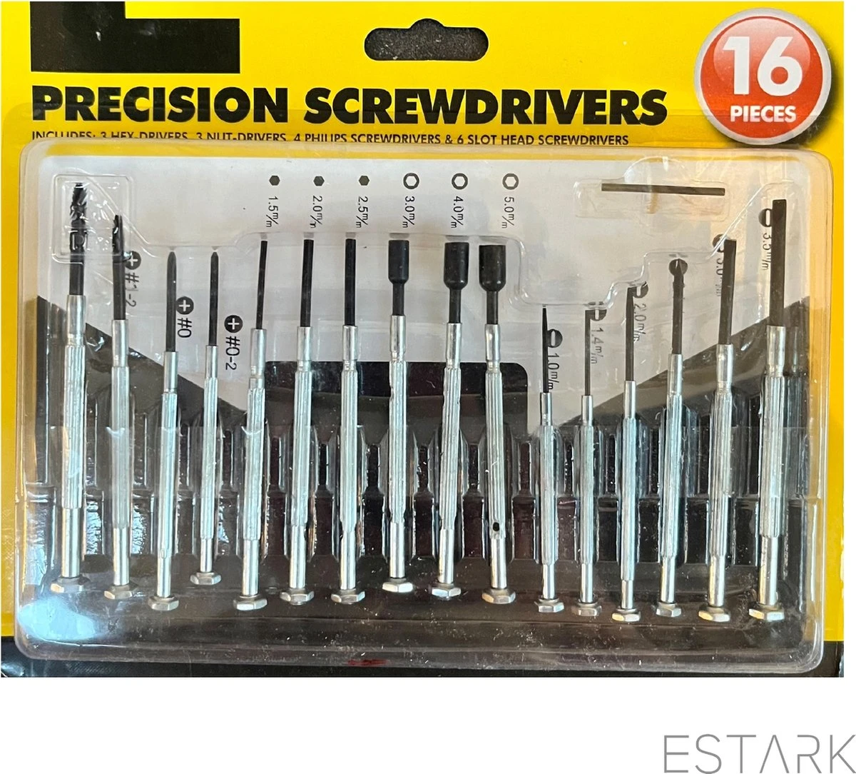 Set met mini schroevendraaiers in 16 verschillende maten van ESTARK.