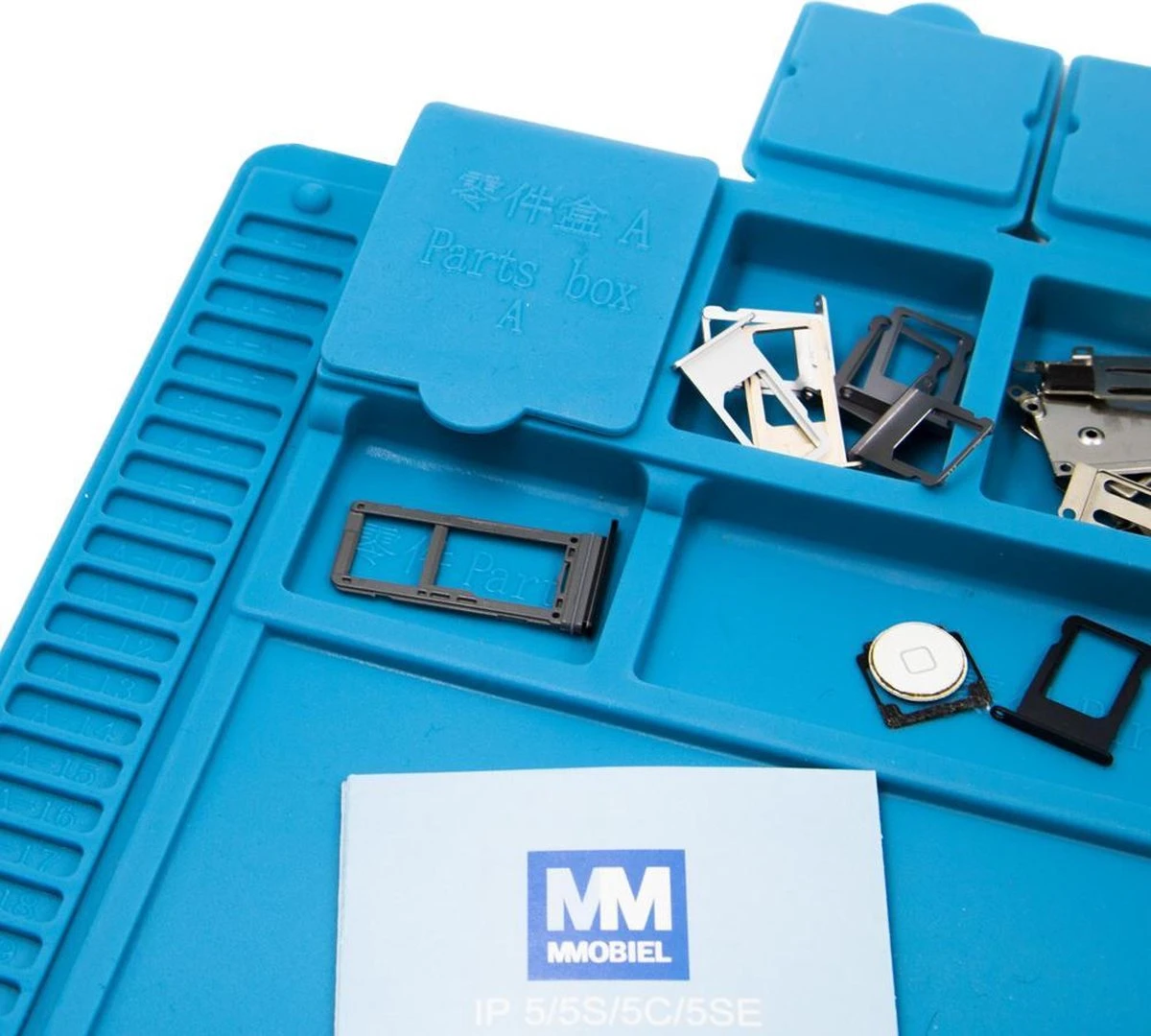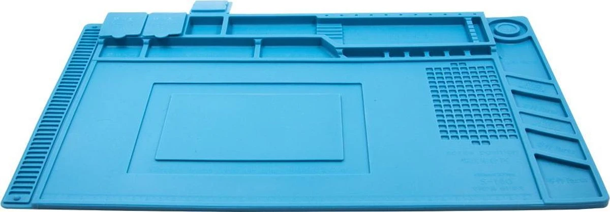 De MMOBIEL siliconen soldeermat is voorzien van een antislip-en kleef laag, 3 magnetische vakken en 3 afsluitbare vakken waarin bijvoorbeeld schroefjes, boutjes en moertjes kunnen worden opgeborgen. Doordat het vakje magnetisch is of afgesloten kan worden voorkom je dat kleine onderdelen verloren gaan.