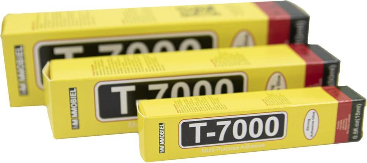 - T-7000 high performance lijm presteert beter dan siliconen, acrylaten en rubber cementen door te hechten aan meer oppervlakken met een grotere duurzaamheid. T-7000 biedt een uitstekende hechting op hardnekkige poreuze en niet-poreuze ondergronden, steen, rubber, mobiele telefoonbehuizingen, LCD en andere industriële producten.