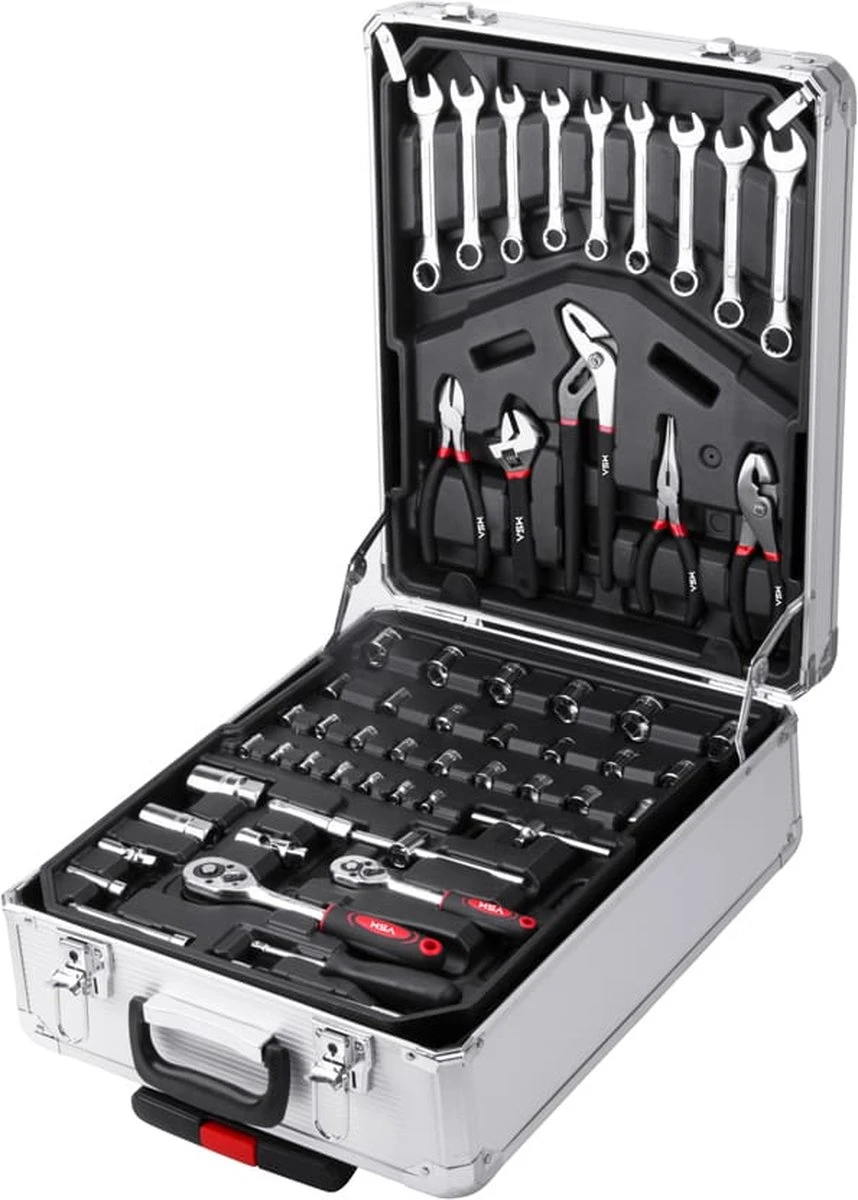 Het gereedschap is geschikt voor zowel de doe-het-zelver als voor professionals. Het gereedschap wordt veel gebruikt in autowerkplaatsen, servicediensten, de industrie en door monteurs. De koffer zit boordevol kwaliteitsgereedschap, gemaakt van hoogwaardig Chroom Vanadium staal. Dankzij de wieltjes en het uitschuifbare handvat neem je de gereedschapskoffer moeiteloos overal mee naartoe.