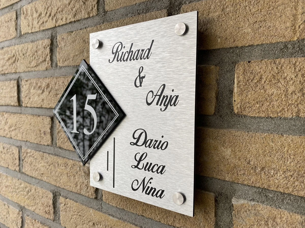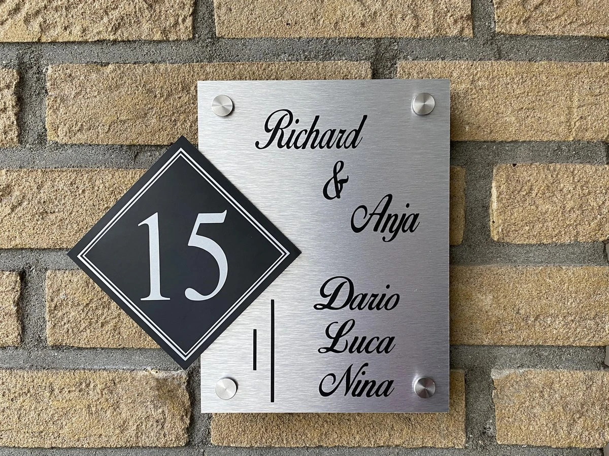 Naambordje Strak lijnen 2 met een apart huisnummer bordje aan de linker kant.