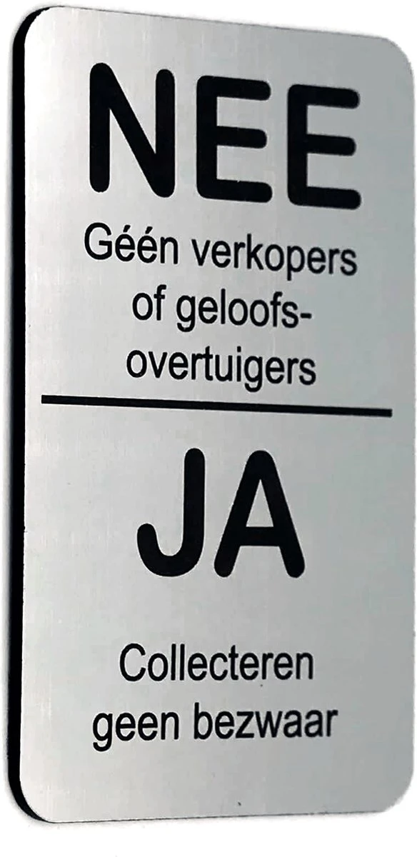 NEE Geen Verkopers Of Geloofsovertuigers JA Collecteren Geen Bezwaar – Brievenbus Sticker – RVS Look – Zelfklevend – 50 Mm X 80 Mm X 1,6 Mm – YFE-Design