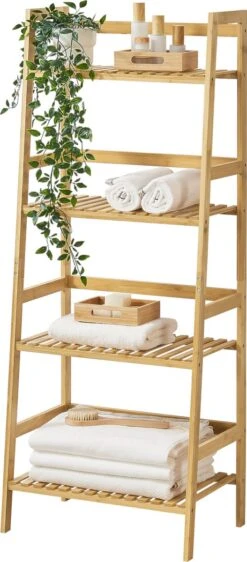 De praktische en decoratieve ladderrek met planken biedt ideale opbergruimte en is perfect voor keuken of badkamer.