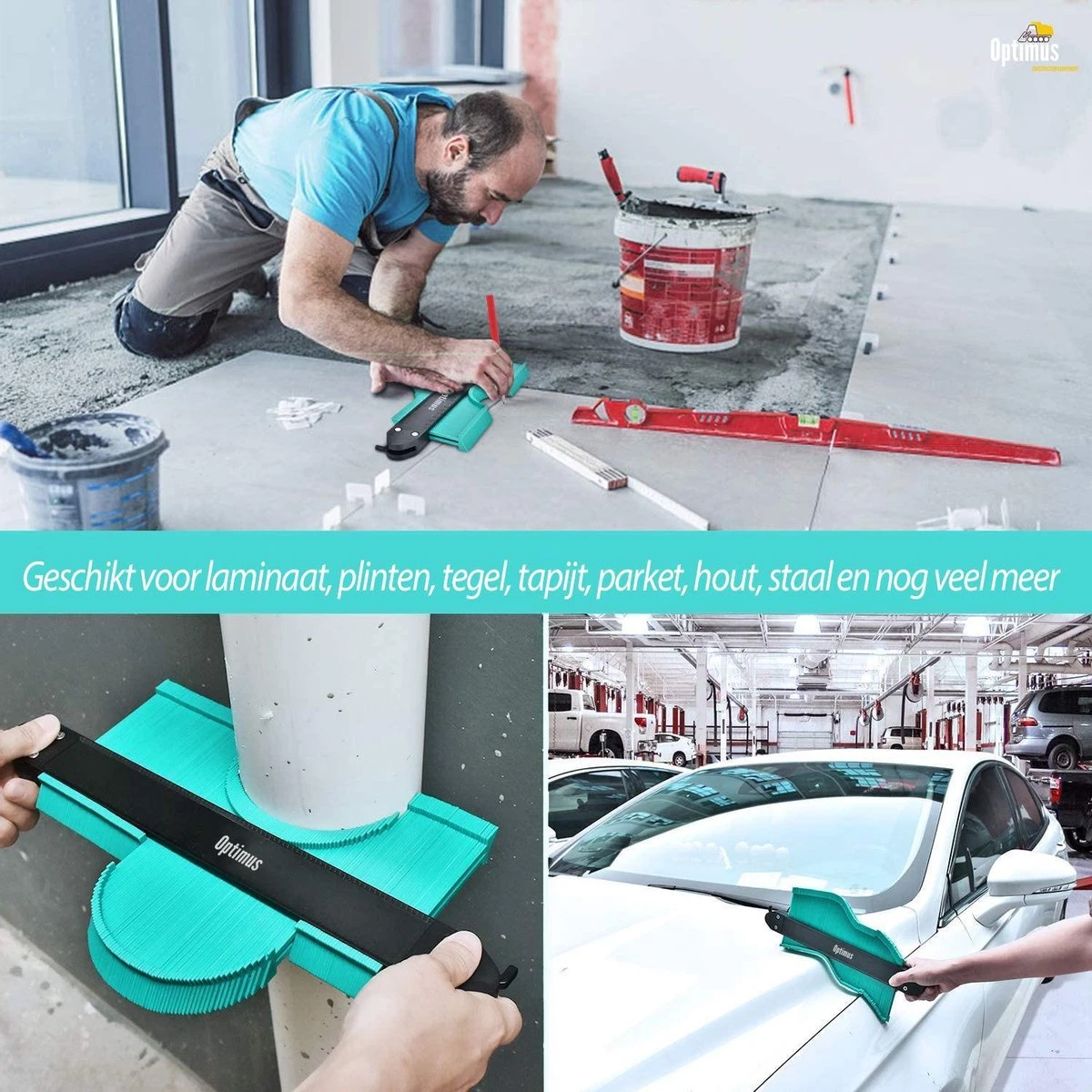Optimus, een specialist in constructie materiaal heeft een aftekenhulp ontwikkeld: De dubbele lock profielmeter van hoogwaardig ABS. Het dubbele slot zorgt voor nog meer precisie tijdens het aftekenen van vormen in tegenstelling tot een enkelvoudige lock. De profielmeter is roestvrij, compact, makkelijk te dragen en bovendien razend populair in Nederland en België.