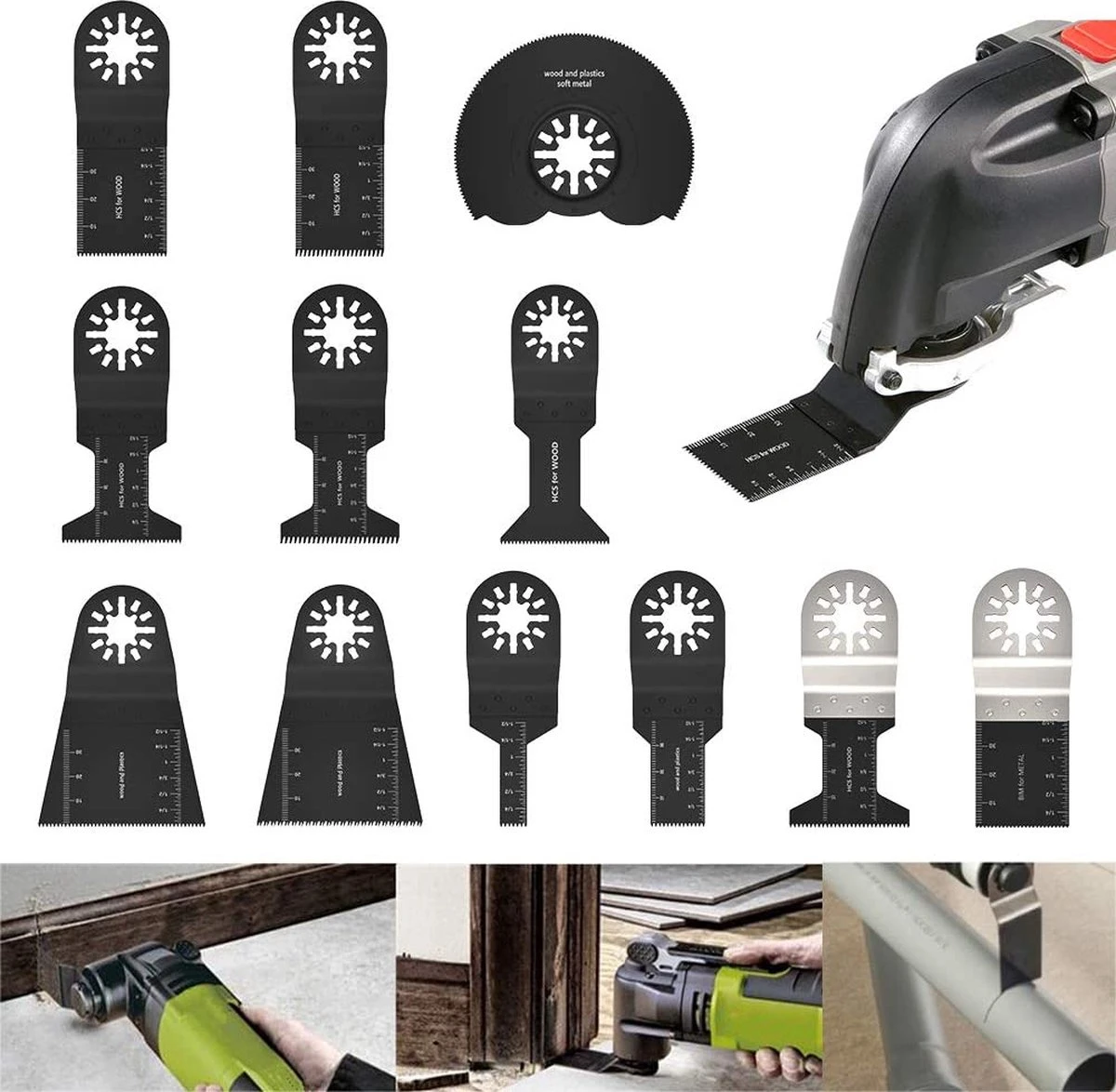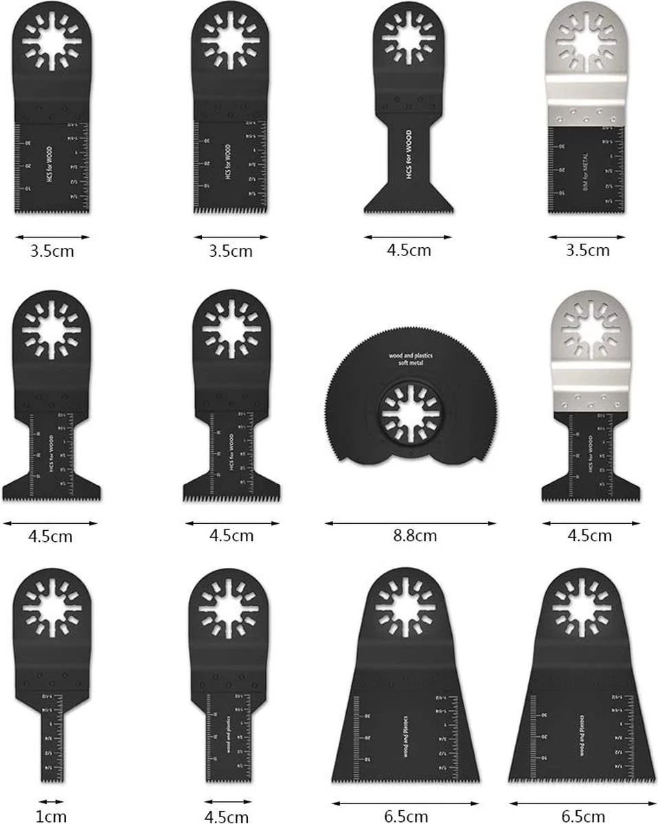 Oscillerende Zaagbladen, 12 Stuks, Kit, Multitool, Oscillerende Gereedschappen, Zaagbladen, Mixen, Multitool, Blades Kit Voor Slijpen/snijden, Universeel Multitool Geschikt Voor Bosch, Fein Multimaster