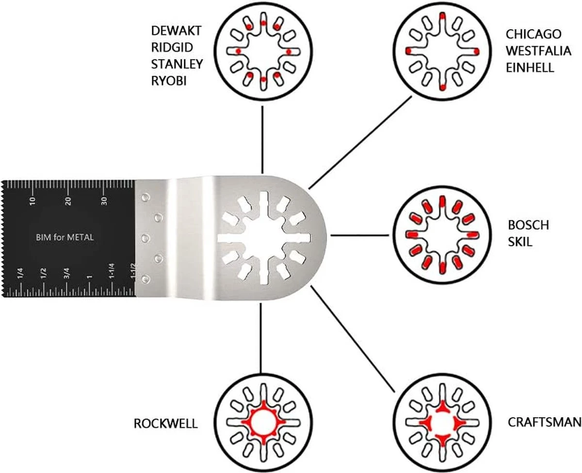 - Compatibiliteit: geschikt voor de meeste multifunctionele gereedschappen zoals Worx Hyperlock, Wolf, Bosch, Makita, Ergotools, Fein Multitalent, Hitachi enz.