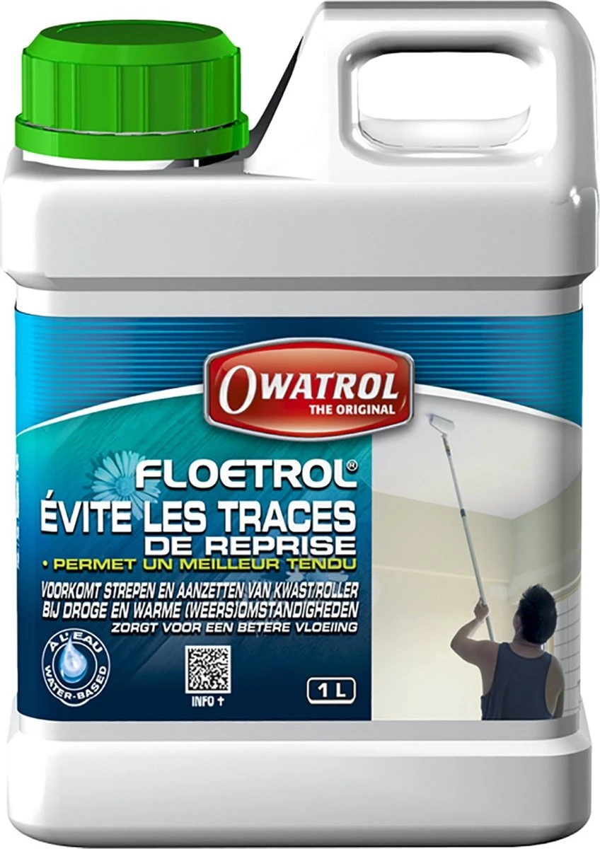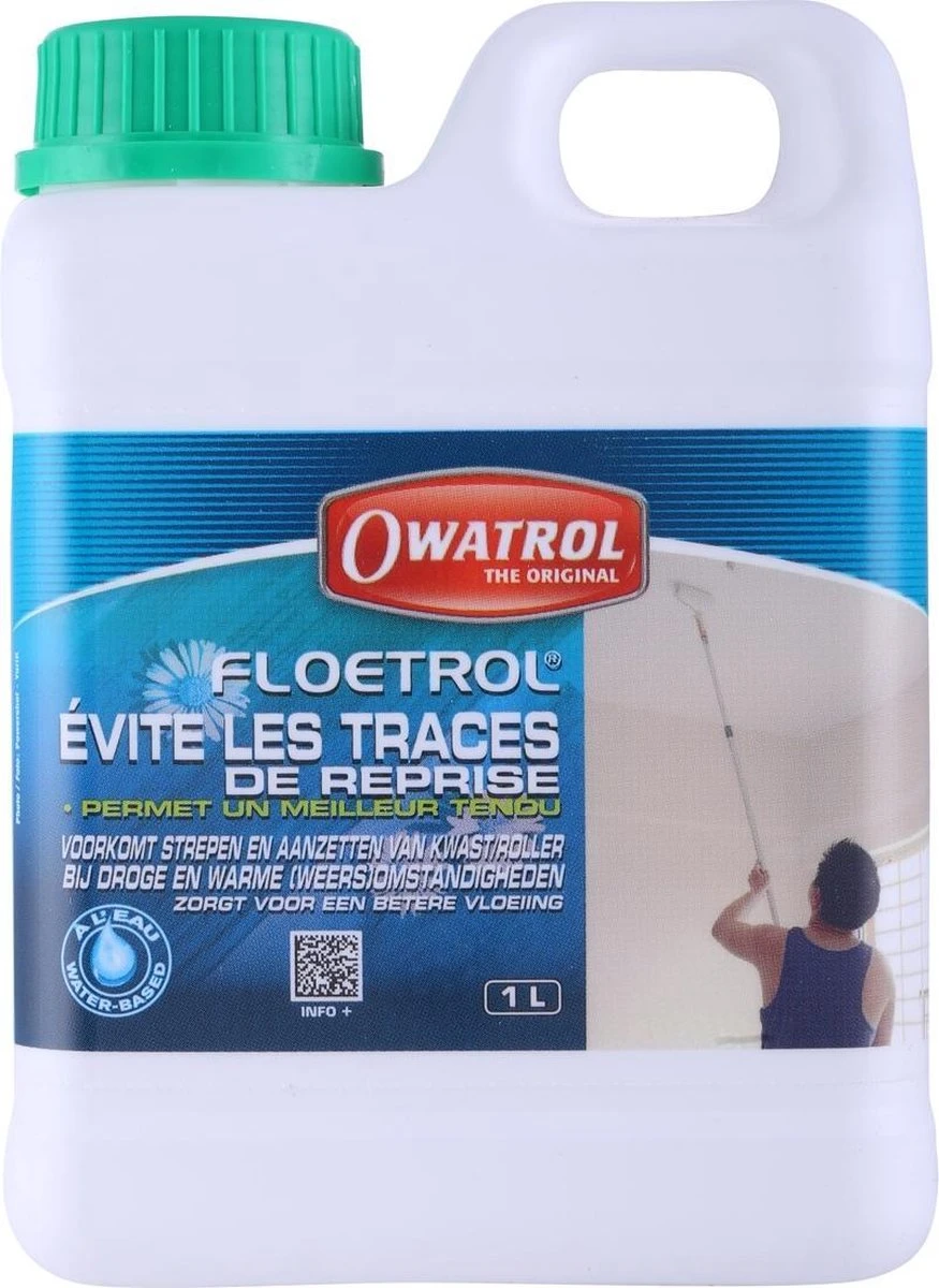 Te gebruiken in alle acrylverven. Handhaaft de kwaliteit en eigenschappen van de verf. Binnen-/buitenshuis. Door FLOETROL toe te voegen aan latex of muurverf, zijn overlappingen, strepen en schaduwproblemen te voorkomen. FLOETROL heeft geen enkele invloed op de kleur van de verf. De kleur blijft onveranderd.