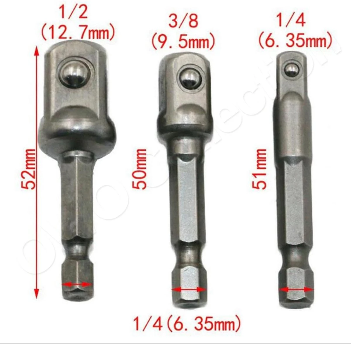OWO – Bit adapter met hex aansluiting naar dop (1/2) (3/8) (1/4) bitverloop bithouder bitadapter adapterset uitbreider verleng verloop set 3 stuks