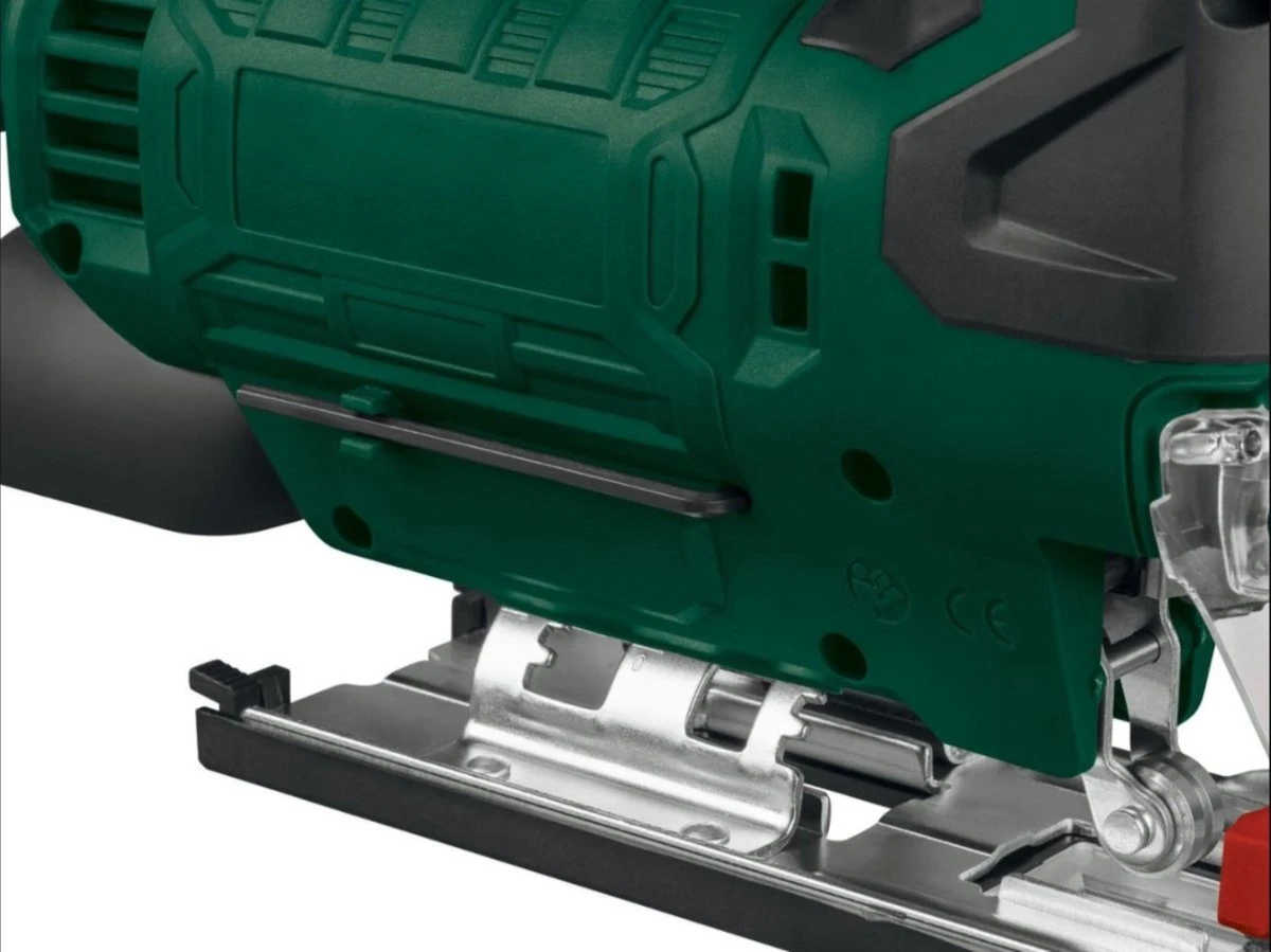 - De decoupeerzaag heeft een snelle voortgang en kan soepel bochten zagen door de in 3 standen instelbare pendelslag