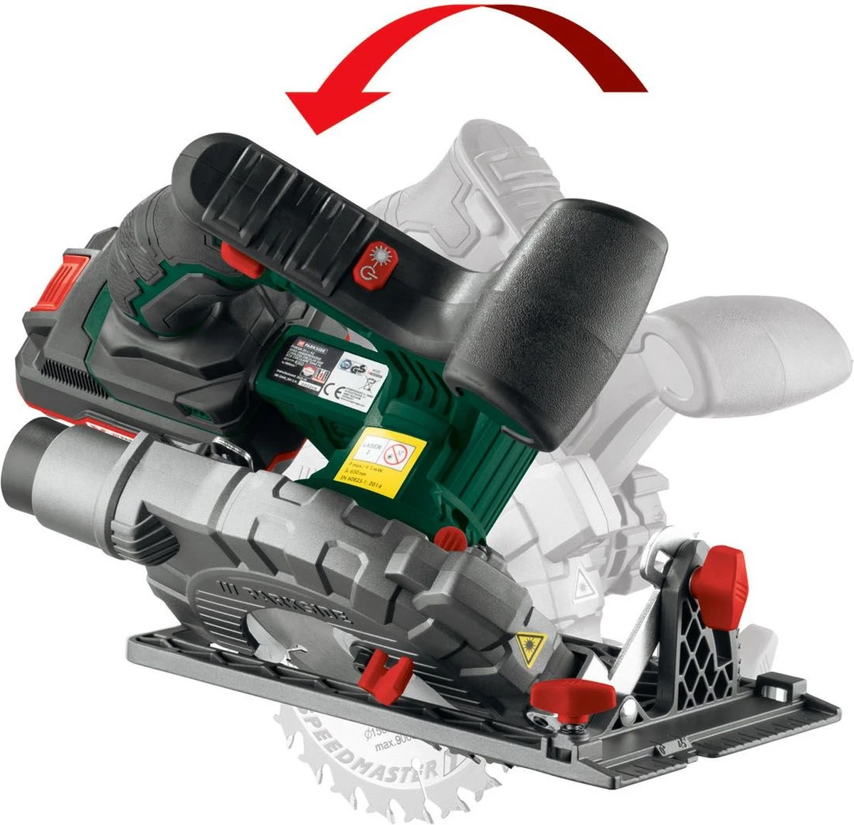 - Deze handcirkelzaag is uitgerust met handige laser die de zaaglijn op je werkstuk projecteert voor een maximale zaagprecisie