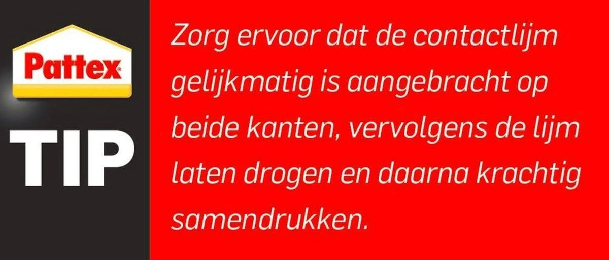 Pattex Vloeibaar – Deze superlijm met hoge vocht & hitte bestendigheid is geschikt voor bijna alle materialen. Pattex Vloeibaar is de “moeder” van het Pattex contactlijmen assortiment. Pattex Vloeibaar heeft een snelle aanvangshechting met hoge lijmkracht, is makkelijk aan te brengen en is ideaal voor het verlijmen van verschillende oppervlakken of fineer, ook op moeilijk bereikbare plaatsen.