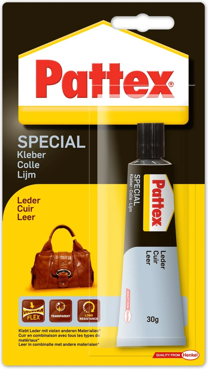 Pattex Special Leder is dus de beste oplossing voor de verlijming van leder en kunstleder. De lijm is flexibel, slijtvast en droogt transparant op.