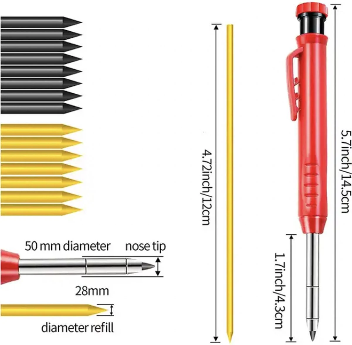 - Het potlood is verkrijgbaar in een stijlvolle en opvallende rode kleur, zodat het gemakkelijk te vinden is in je gereedschapskist of op je werkbank.