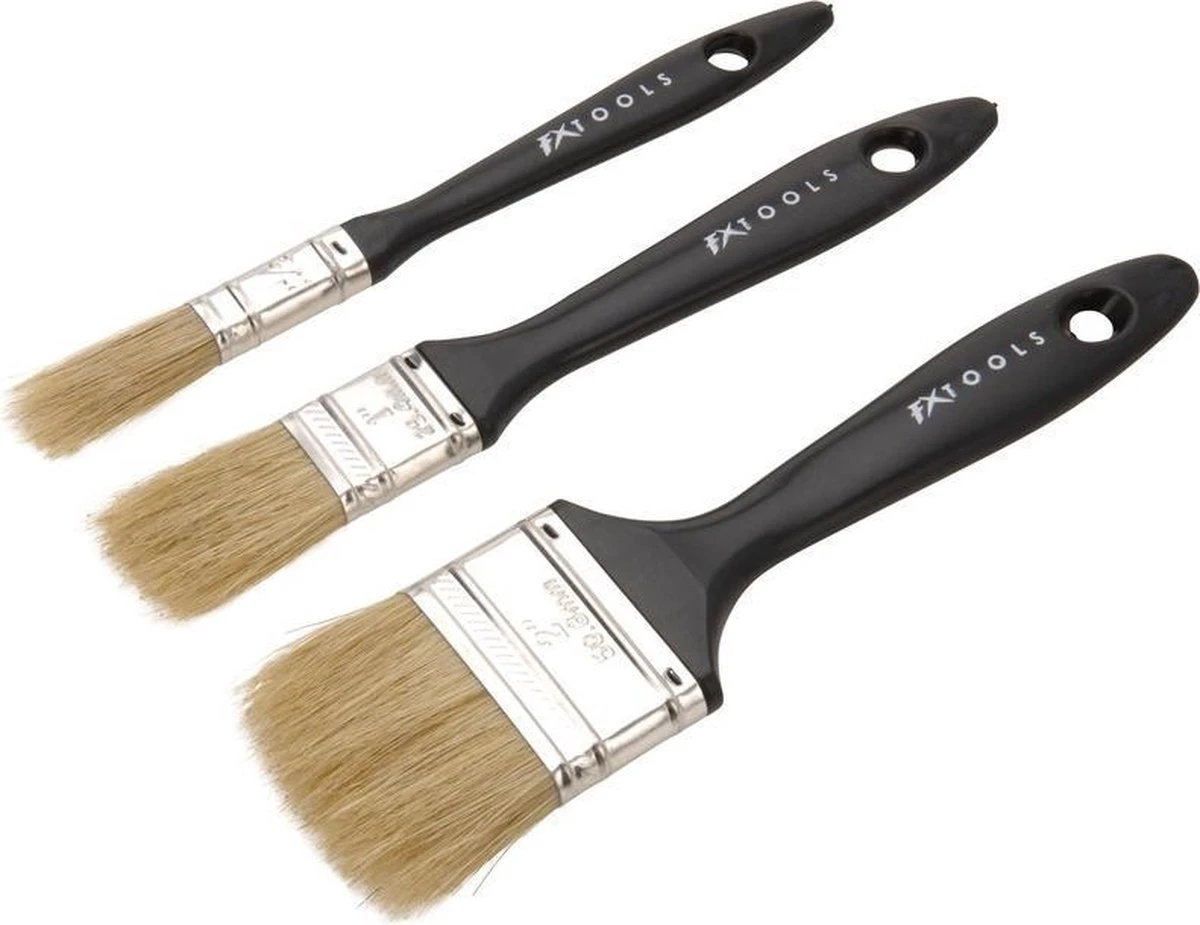 Platte Verfkwasten Set Met Echt Haar – B 12,5- 50 Mm – 3-delig – Water- & Oliebasis – Universele Verfkwasten – Schilder Benodigheden – Kwastenset – Verf Materiaal – Schilderen & Verven