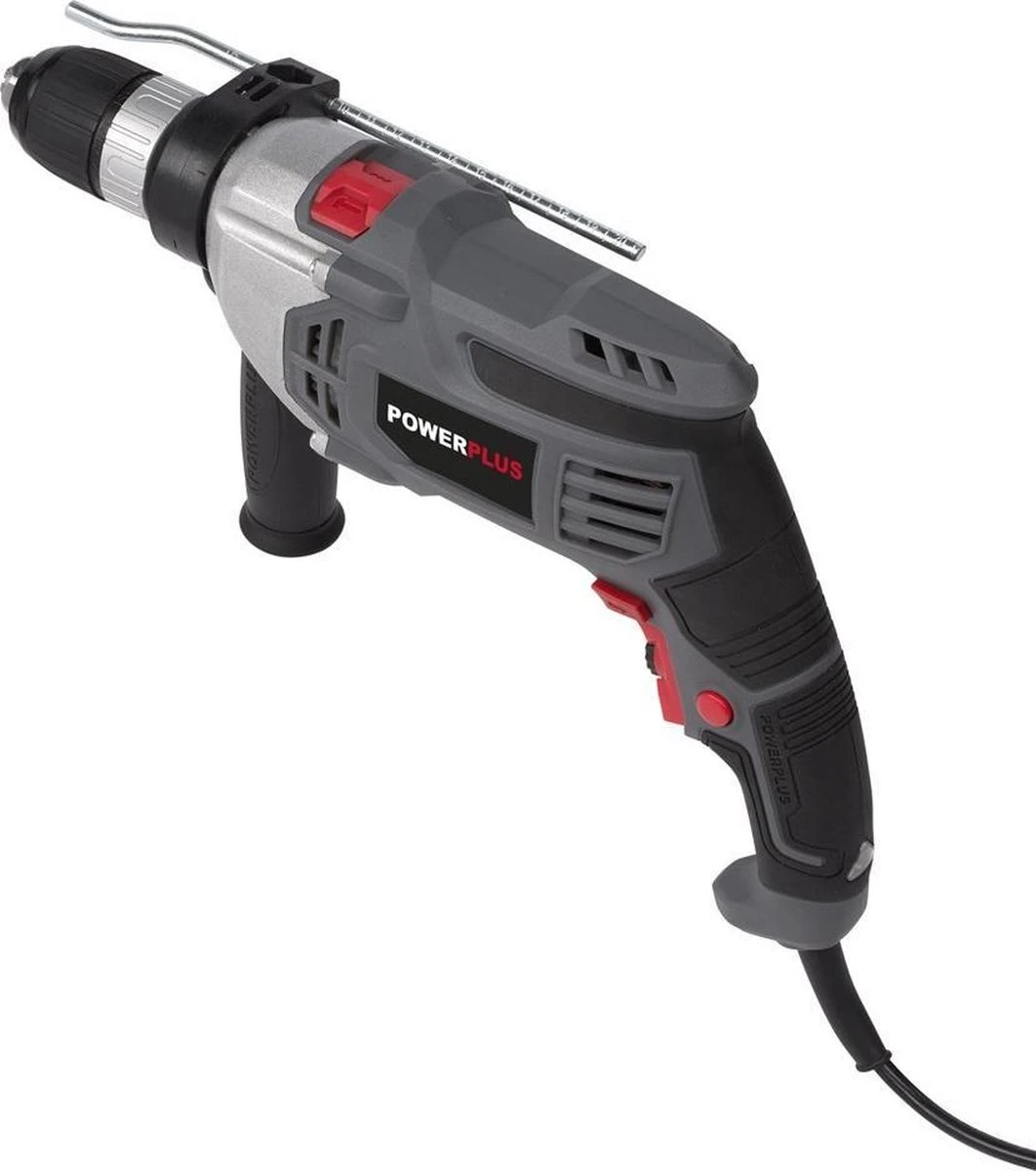 De 950 klopboormachine heeft een klopfunctie waarmee je dus niet alleen vlotjes door hout (tot 40 mm) en staal (tot 8 mm) boort, maar ook moeiteloos tot 50 mm in beton boort. De hulphandgreep geeft je daarbij de steun die je zoekt, je blijft volledig controle behouden over het boorwerk. Afhankelijk van de schroef- of boorklus, pas je ook heel makkelijk het toerental van de POWE10035 aan. De dieptestop voorkomt dat je geen millimeter te diep boort.