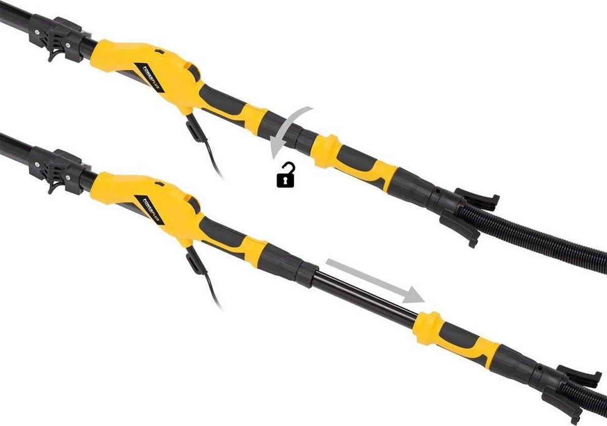 Met deze Powerplus langnekschuurmachine schuur je gipsplaat, plafonds en muren op een comfortabele en snelle manier. Je verwijdert er ook restjes verf, lijm en pleisterwerk mee. De schijfdiameter van deze schuurder is 215mm, wat hem geschikt maakt voor schuurpapier van 225mm.