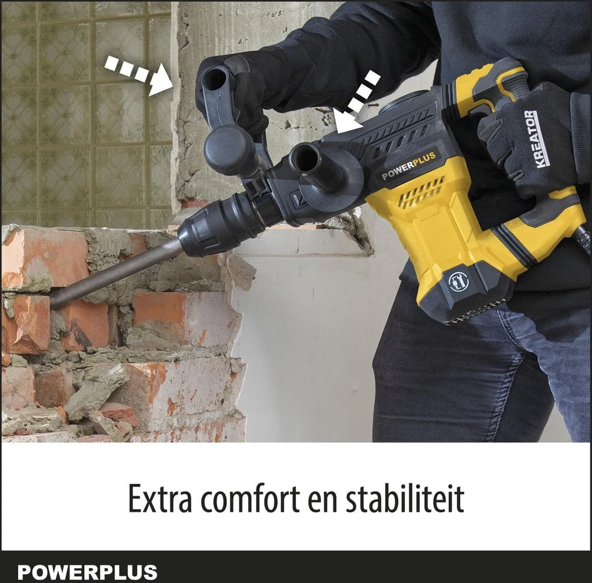 Deze boorhamer doet zijn naam alle eer aan en gaat vlot door beton, baksteen en steen. Zowel hamerboren als licht beitelwerk zijn geen probleem voor deze krachtige breekhamer van Powerplus.