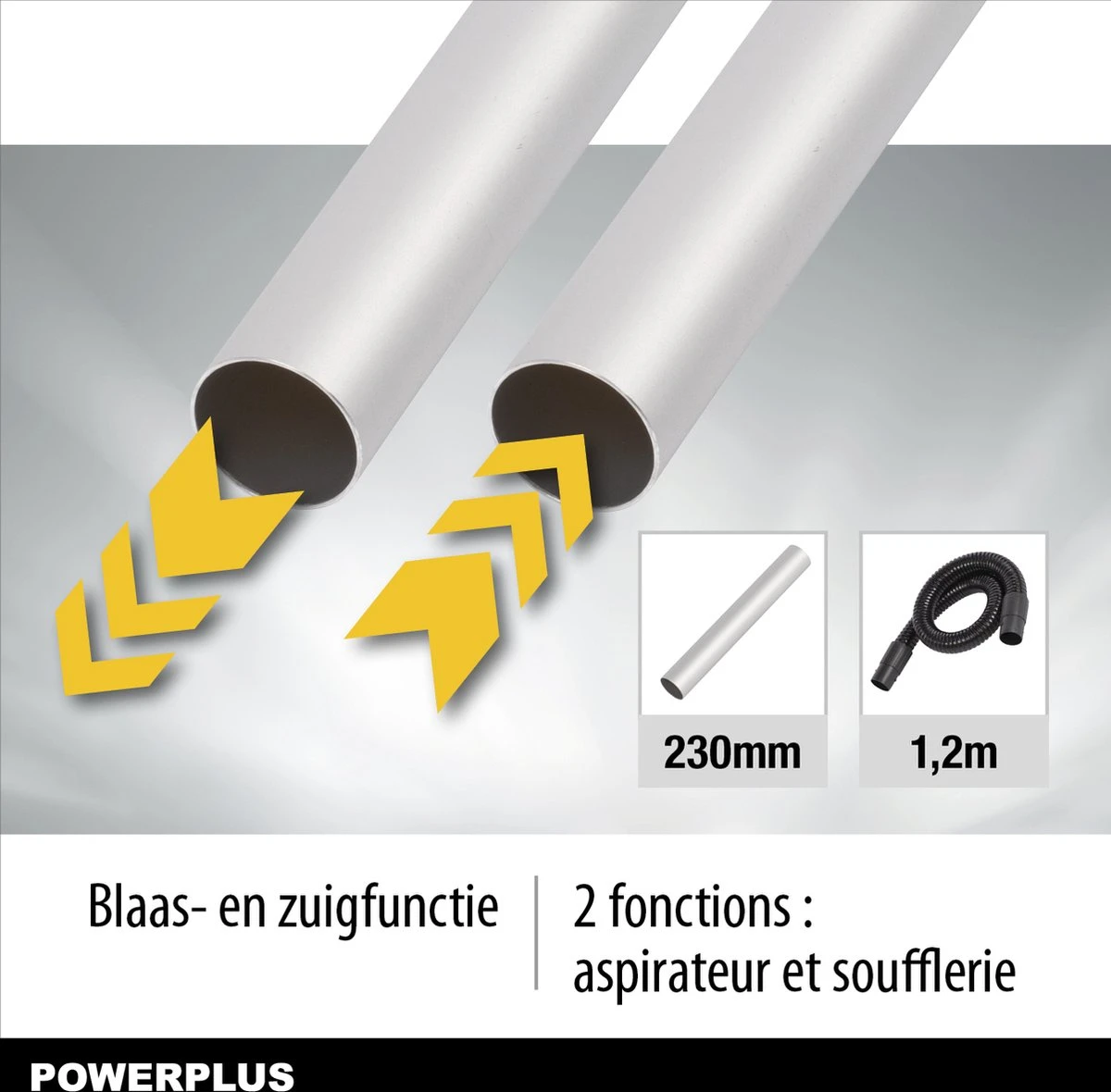 Met zijn 17 kPa aan zuigkracht maak je alles in een mum van tijd weer schoon en met de blaasfunctie houd je dan weer makkelijk je werkplaats of terras stof- en bladvrij.