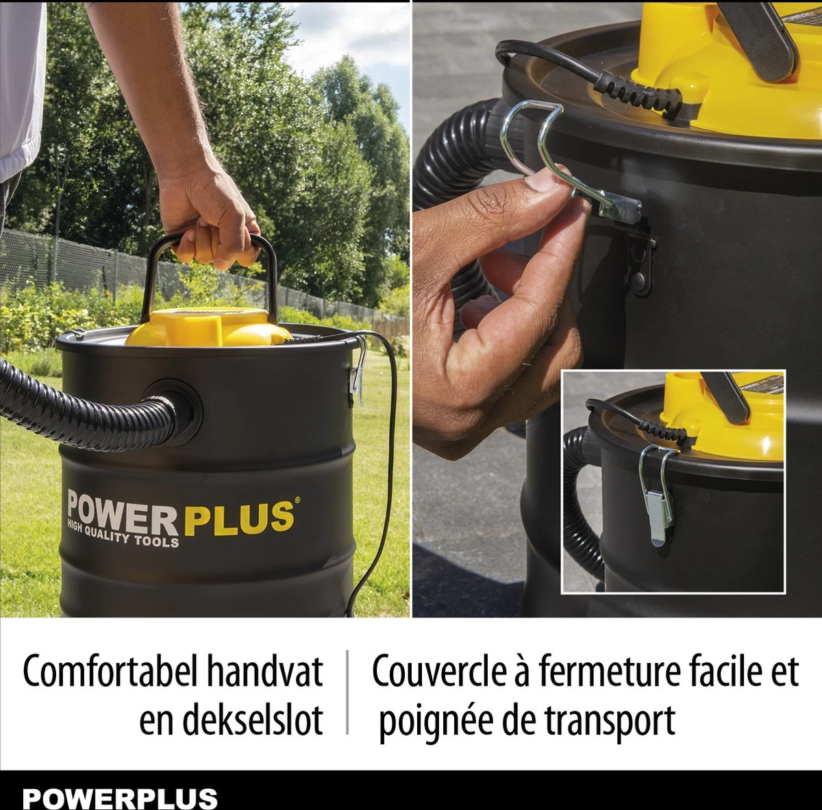 Makkelijk te verplaatsen: Het compacte ontwerp van de aszuiger maakt dat hij eenvoudig te transporteren is. Ook het praktische handvat draagt daartoe bij. De slang van 1,2 m in combinatie met de 2 m lange elektriciteitskabel geven je dan weer de nodige bewegingsvrijheid.