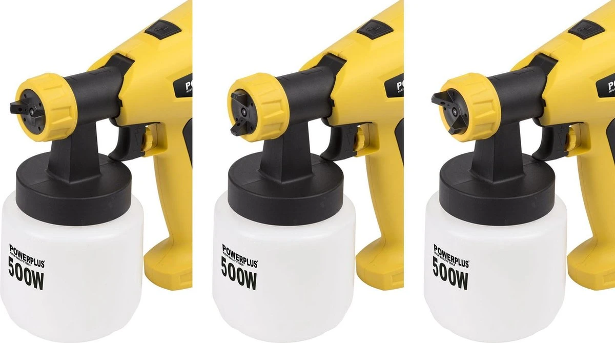 - Je kiest zelf het spuitpatroon: je kan verticaal spuiten, horizontaal verven of kiezen voor een rond patroon.