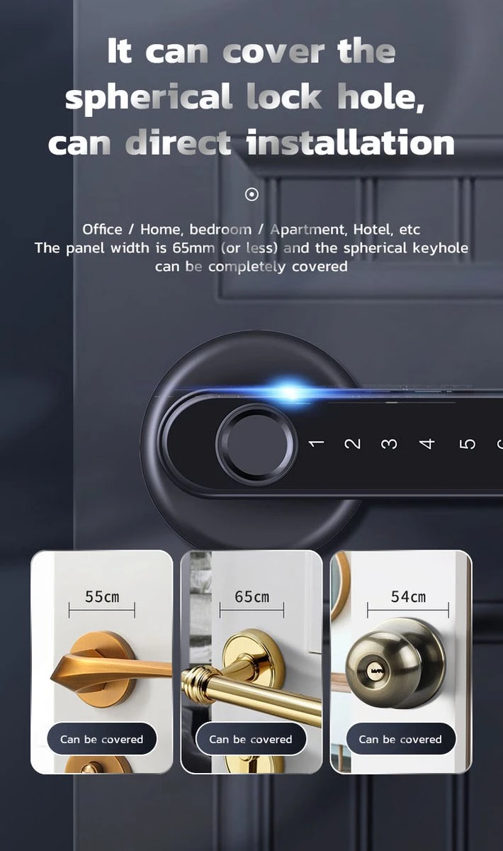 Het slimme deurslot is volledig gebruikersvriendelijk gemaakt. De plaatsing van de vingerafdruk, code combinatie en sleutel staan ideaal, waardoor je met het scannen van je vinger al binnen 0.3 seconden in je kamer kan staan. Het slot past hierdoor ook op elke deur en is erg gemakkelijk te installeren.