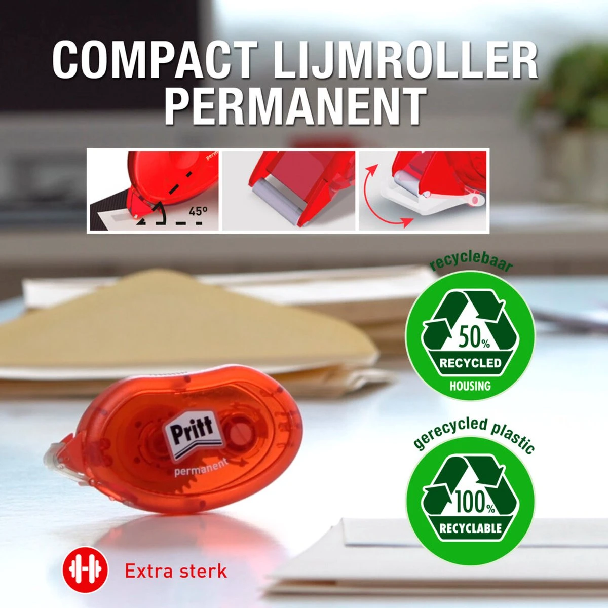 Pritt Compact Lijm Roller Permanent – Met honingraattape voor nette en nauwkeurige verlijmingen!