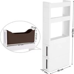 Songmics Smalle Opbergkast – 2 Korven En 2 Open Vakken – 17 Cm Breed – 106,5 Cm Hoog – Wit