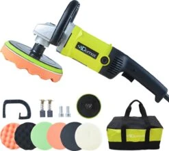 De krachtige polijstmachine kan worden ingesteld op 6 verschillende snelheden en is voorzien van een sterke motor van 1200W, hierdoor kan de machine zelfs de meest doffe en uitgeleefde laklagen weer laten glanzen en stralen. De hendel is afneembaar en beweegt soepel mee met jouw handbewegingen, waardoor je een comfortabele en stevige grip hebt en makkelijk te werk kan gaan.