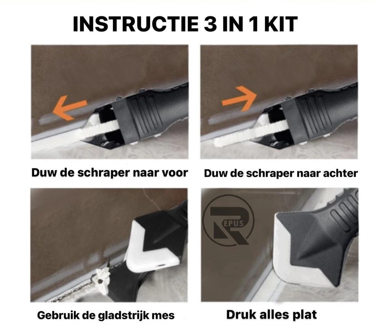De enige tool die je nodig hebt voor een perfecte afwerking. Dan is de Repus 3-in1 Kit schraper van REPUS de musthave voor jou!