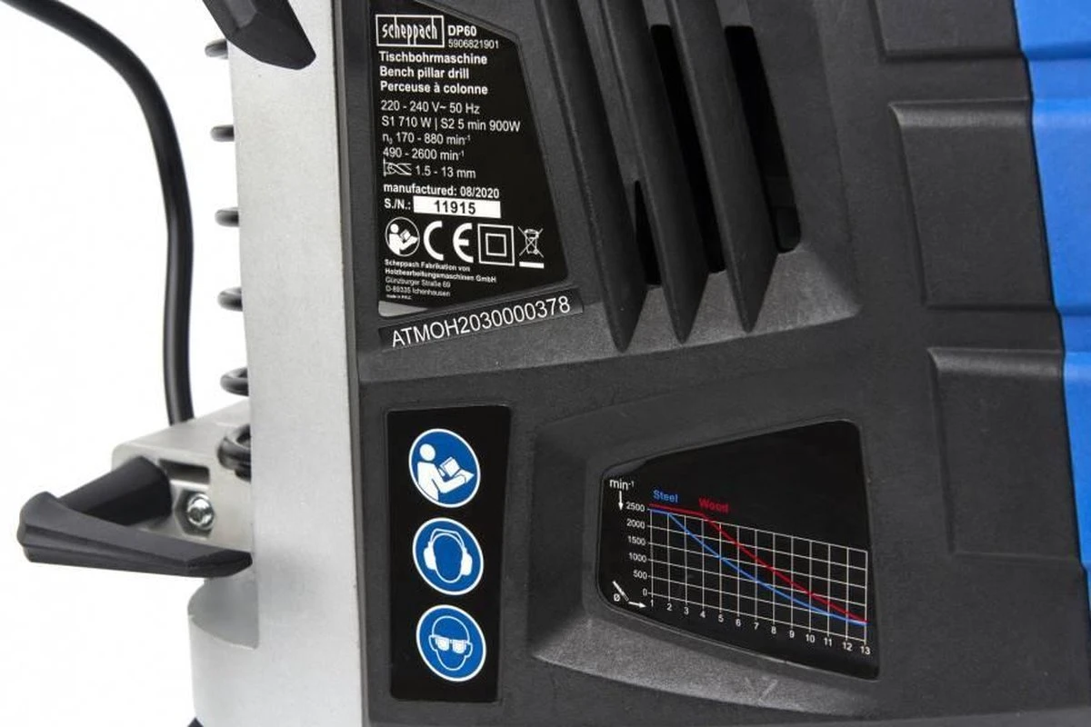 De scheppach tafelboormachine DP60 combineert jarenlange ervaring met een innovatief design. Hij levert nauwkeurige boorresultaten en kan intuïtief worden bediend via het digitale display. De krachtige motor van 710 W heeft twee versnellingen en is traploos regelbaar. Een tafelboormachine voor alle vakmensen die waarde hechten aan betrouwbare technologie.