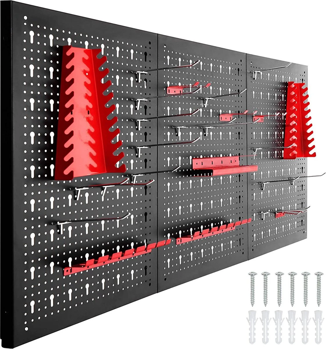 Wanneer je gereedschap in een koffer opbergt, kun je soms lang zoeken naar de juiste schroevendraaier of hamer. Het is niet altijd eenvoudig om de maat snel te zien en je verspilt tijd, door ze 1 voor 1 uit de koffer te halen. Deze wand is zeer praktisch, je sorteert je gereedschap er per soort en maat, zodat je in een opslag het juiste gereedschap voor de klus kunt pakken. De haken en houders die meegeleverd worden met deze wand zijn geschikt voor nagenoeg elk soort gereedschap en gemaakt van hoogwaardige kwaliteit staal. De wand zelf is tevens van staal en heeft gaten op 1.5 cm afstand waar je de haken in kunt hangen. Daarnaast heeft het bord sleutelgaten voor de grotere houders, welke zich op elke 4.5cm bevinden. Indien het bord niet genoeg ruimte biedt aan al je gereedschap, kun je deze uitbreiden met meerdere sets.