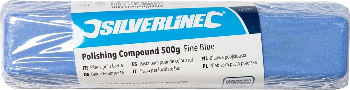 Fijne, blauwe pasta voor eindfase polijsten. Verwijdert bewegingsvlekken en oneffigheden voor een effen, glanzende afwerking van plastics, staal, ijzer, koper en de meeste metalen. Ideaal voor het aanzetten van messen voor een extra scherpe afwerking. Aangeraden te gebruiken op losse viltwielen en vilt polijstwielen. Aangeleverd als een 500g blok voor gemakkelijk aanbrengen en opbergen. Breng weinig en vaak aan voor het beste resultaat.