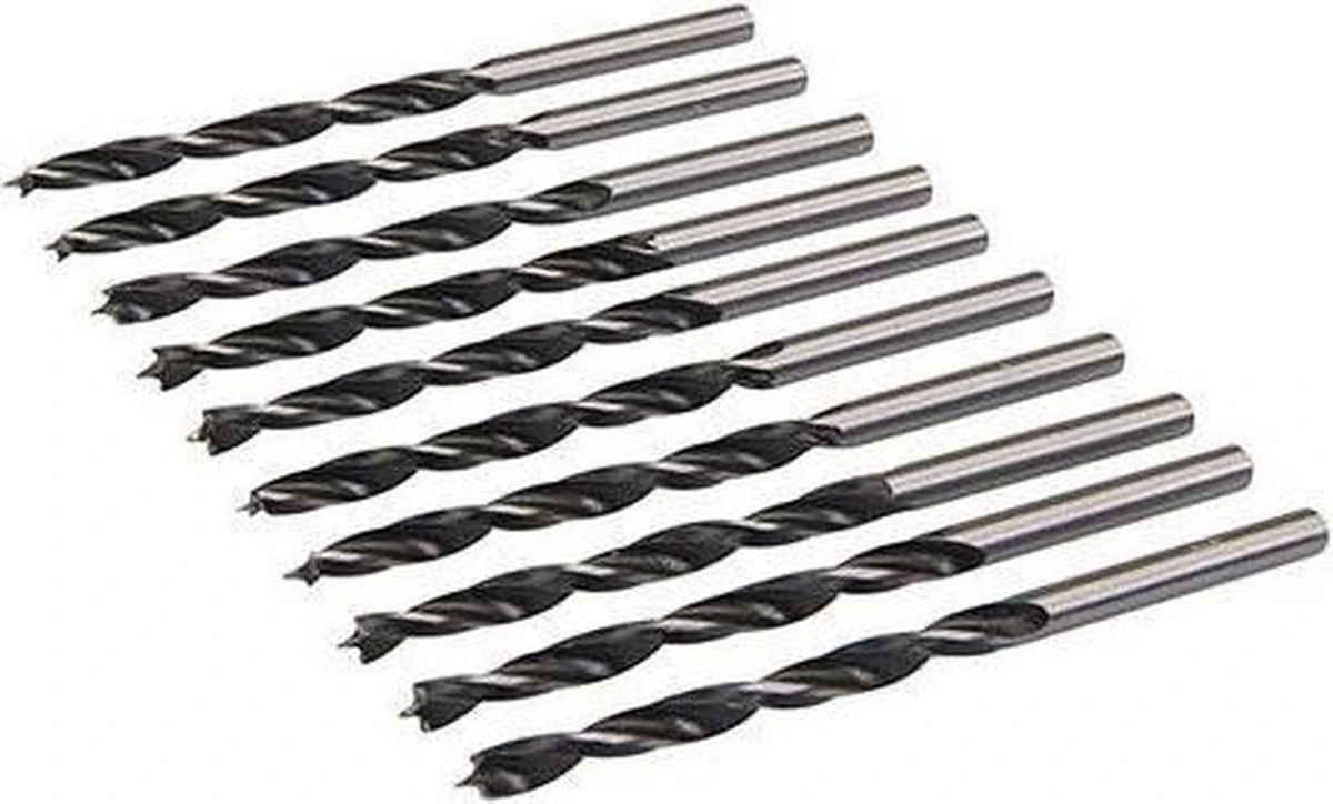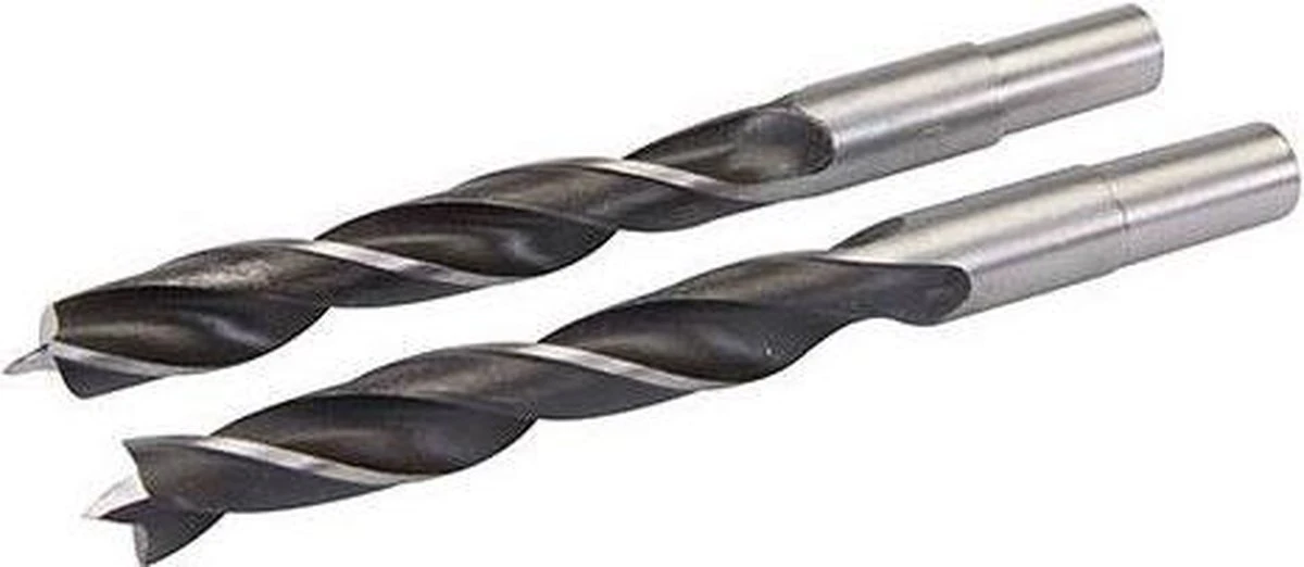 Carbon stalen precisie houtboren. Centreerpunt voor nauwkeurige positionering. 2 boorsporen. Spiraalgroef voor het uitwerpen van het zaagsel