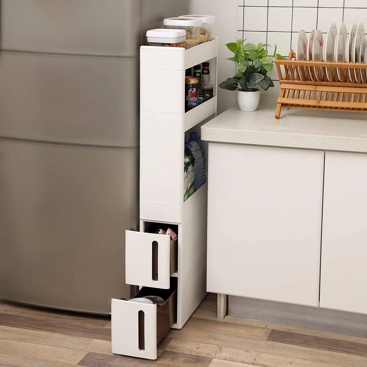 Een briljante opbergoplossing! Deze smalle kast is slechts 17 cm breed en past dus op plekken die anders loos zouden zijn.