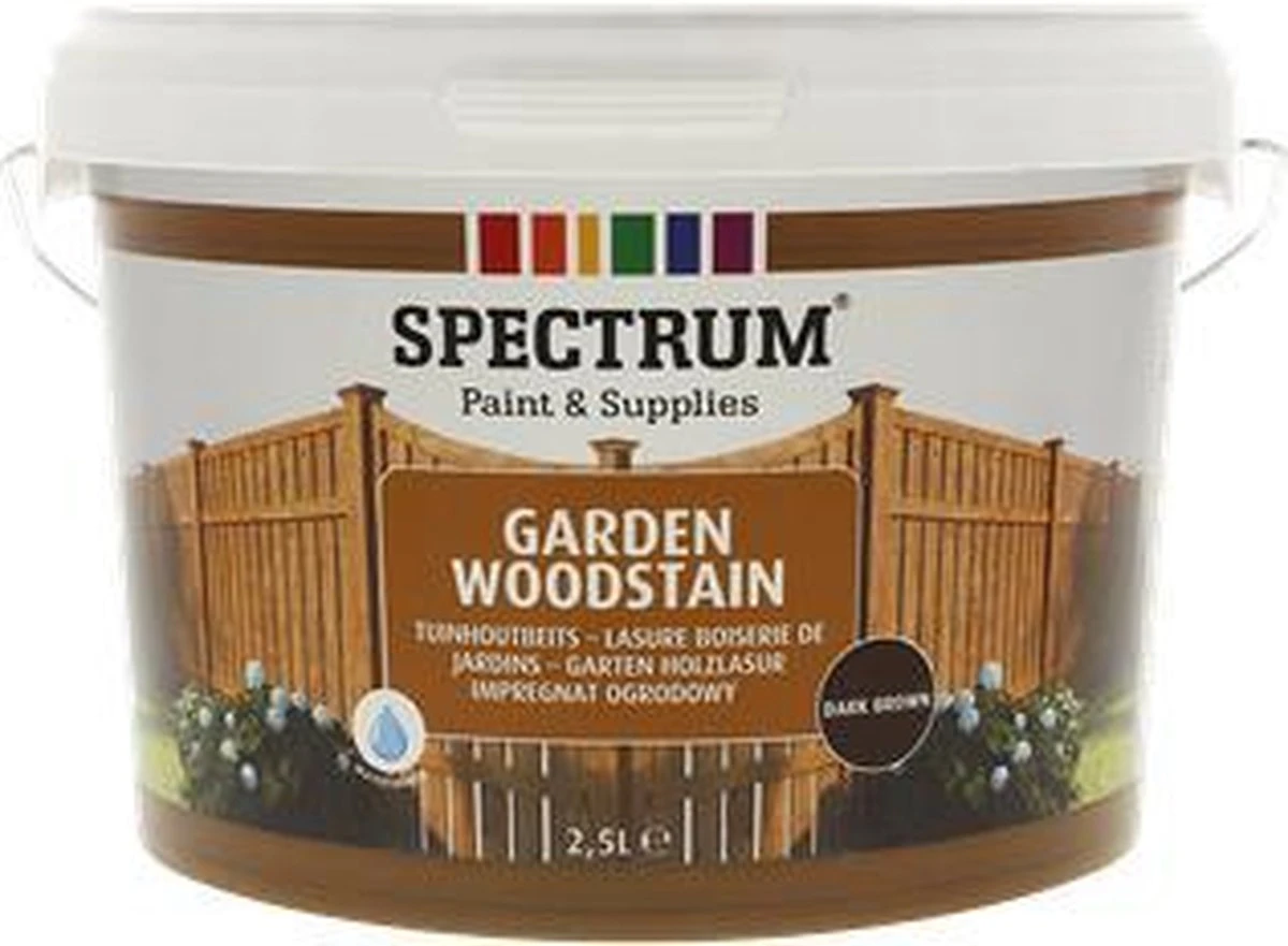 Spectrum beits 2,5 liter donkerbruin is een waterverdunbare weerbestendige beits voor het beschermen en verfraaien van bijvoorbeeld houten schuttingen, hekken, schuren, tuinhuisjes. De beits is eenvoudig aan te brengen, waardoor het hout er weer uitziet als nieuw. Verder blijft u de houtstructuur van het hout goed zien en kan de beits ook gebruikt worden op oude carbolineum toepassingen.