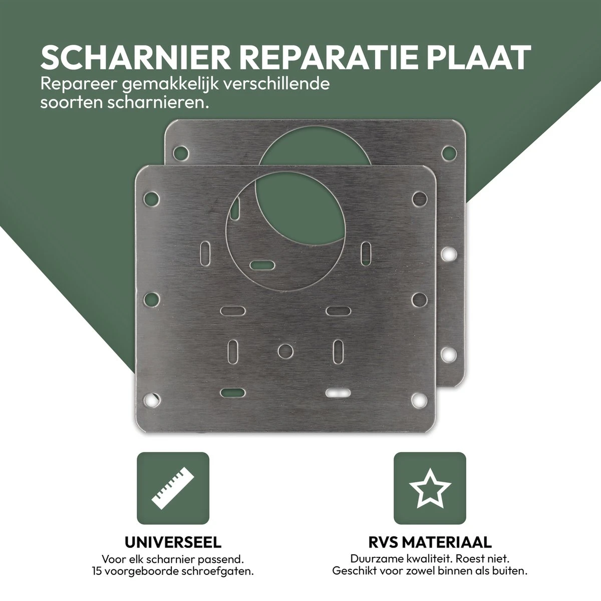 Inhoud Verpakking: 2x Scharnier Reparatie Plaat 90×80 mm en 12x Schroeven