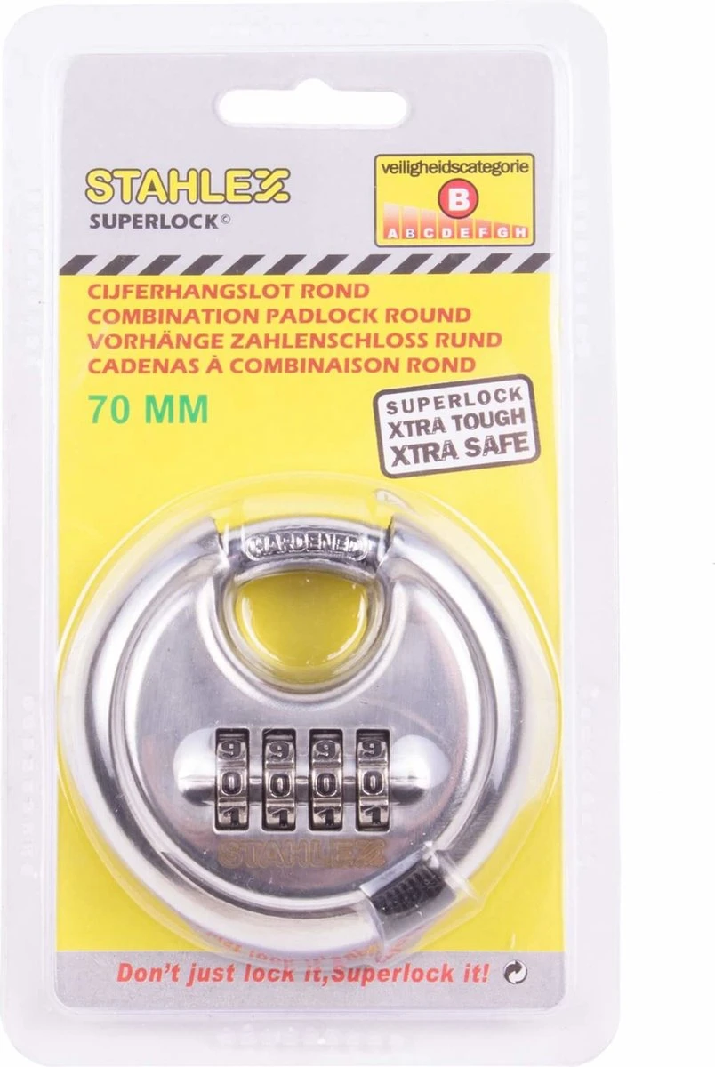 Aangezien het discusslot is vervaardigd van roestvrij staal zal het slot niet gaan roesten en kun je het slot dus ook buiten, het hele jaar door, onder alle weersomstandigheden gebruiken. Het gemak van een discussslot met een cijfercombinatie is nog groter omdat je geen sleutel meer nodig hebt om je discusslot te openen.