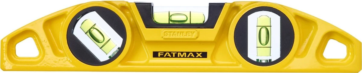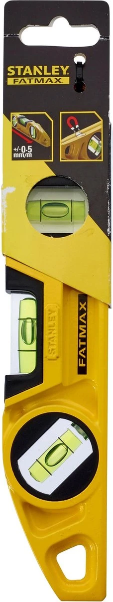 De STANLEY FatMax Torpedo Waterpas heeft een gegoten aluminium frame, stevige libellen en een meetnauwkeurigheid van 0,5 mm/m. Voorzien van een extra groot middenlibel en sterke magneten. De waterpas heeft een groef voor gebruik op ronde oppervlakken.