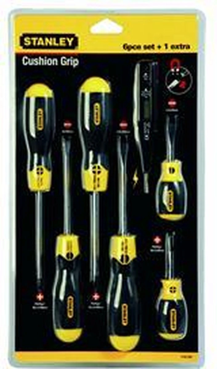 Met deze 6- delige STANLEY Cushiongrip Schroevendraaierset weet je zeker dat je altijd de juiste schroevendraaier bij de hand hebt. Een zeer geschikte en comfortabele set.
