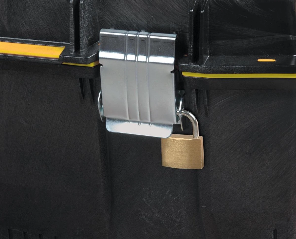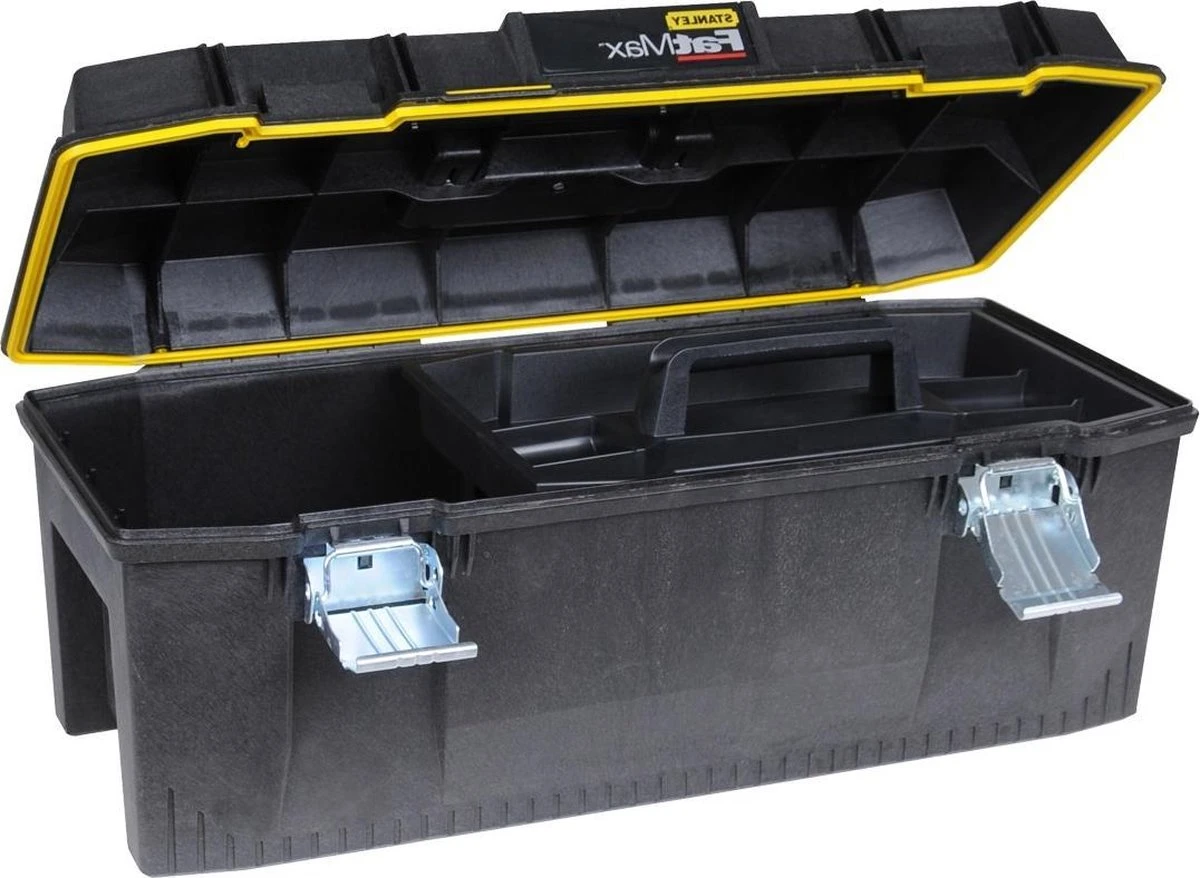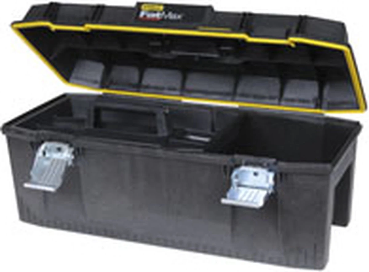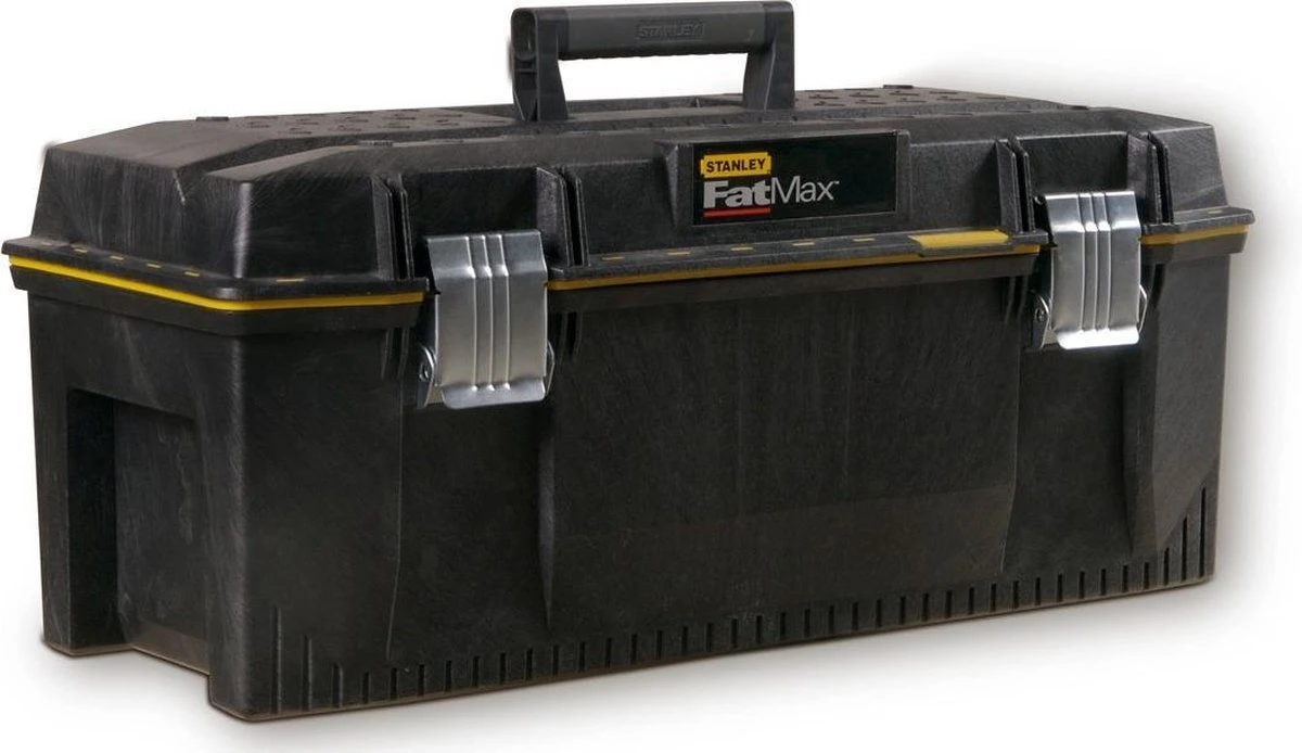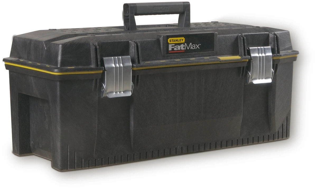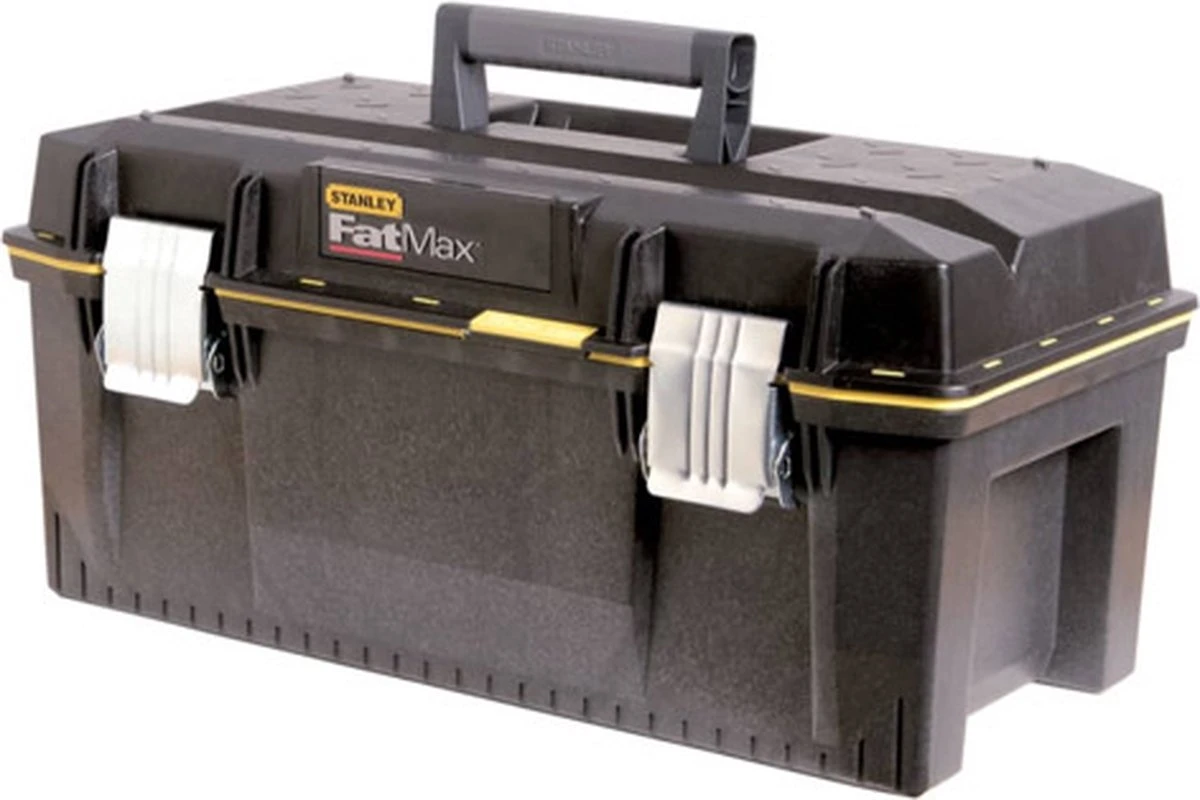 De STANLEY FatMax 1-94-749 Heavy Duty Gereedschapskoffer is gemaakt door Stanley. Hij is gemaakt volgens de hoogste standaarden en uitgebreid getest om te zorgen voor maximale duurzaamheid voor de zwaarste klussen. Hij is 100% waterdicht dankzij de waterafdichting rondom, waardoor regen en water niet in de gereedschapskoffer kan komen en uw gereedschap kan beschadigen. De stevige soft grip handgreep zorgt voor een stevige, comfortabele grip wanneer u de gereedschapskoffer van klus naar klus draagt. De uitneembare tray is ideaal voor het opbergen en dragen van klein gereedschap en accessoires en de geïntegreerde V-groef kan worden gebruikt als zaaghulp. Daarnaast is de koffer gemaakt van structuurschuim, voor extra duurzaamheid terwijl er ook extra veel opbergruimte is. Daarnaast zorgen de metalen sluitingen voor veiligheid en stevigheid. Het is een absolute musthave voor alle klussers die buiten werken.