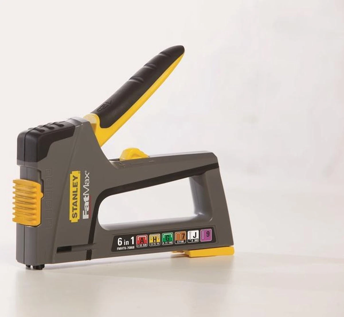 Met de Stanley FatMax Handtacker 6-in-1 niet je met gemak materiaal vast zonder elektriciteit nodig te hebben.Deze handtacker is geschikt voor zes typen nieten en nagels. Het apparaat is snel en simpel te laden. De anti-blokkeerfunctie zorgt ervoor dat het apparaat niet zo maar blokkeert tijdens het gebruik.