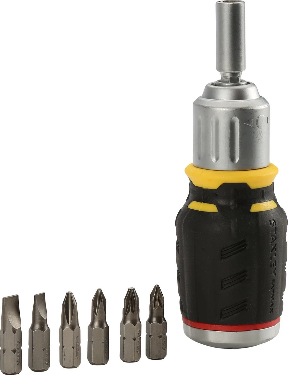 De Stanley FatMax Ratelschroevendraaier Stubby 6 bits is een krachtige alleskunner met een extreem hoog draaimoment. Dankzij de meegeleverde bits kun je de schroevendraaier bij al je klussen gebruiken.