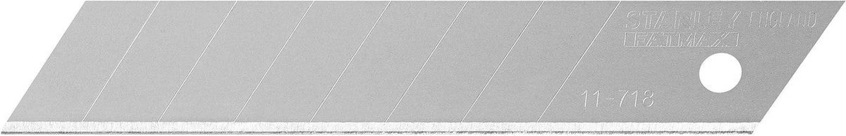 Met Stanley FatMax Reserve Afbreekmes achttien millimeter (tien stuks) ben je klaar voor grote en kleine snijklussen. Geen zorgen dat je voorraad mesjes op is.