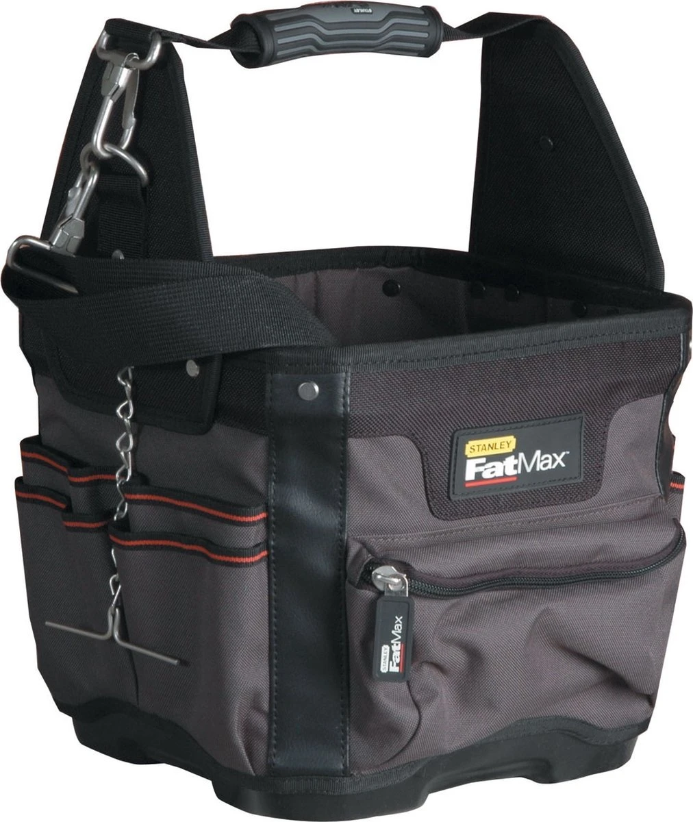 De Stanley FatMax Gereedschapszak voor Technici heeft een ergonomische rubberen handgreep. Heavy duty schouderriem. Uitneembaar tussenschot met gereedschapshouders en riemclip. Binnen- en buitenzakken voor maximale opbergcapaciteit. Stalen houders voor isolatietape en rolbandmaat. Afgesloten compartiment voor bithouders. Afmetingen: 28 x 29 x 38 cm.