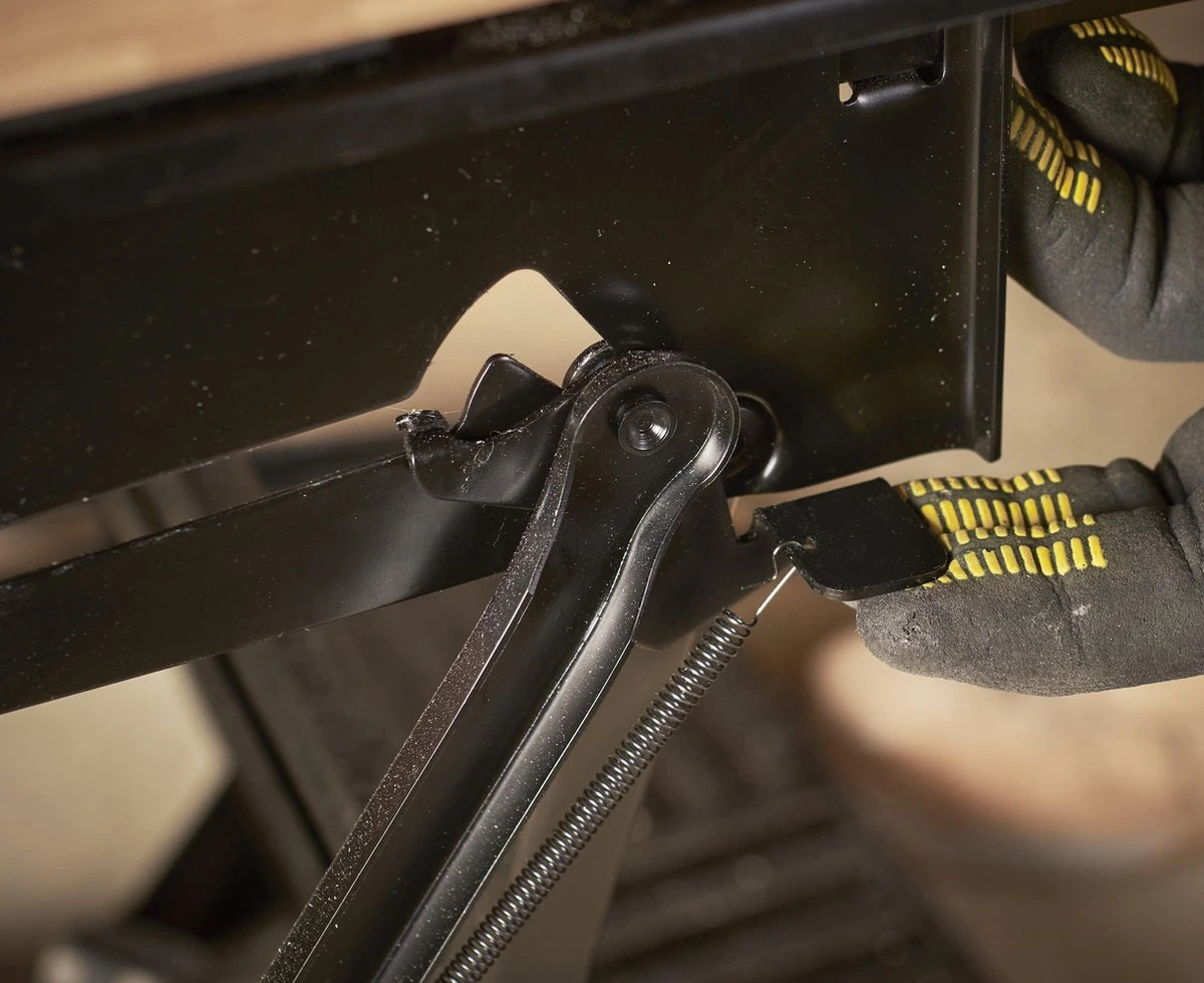 - Twee werkhoogtes: voor comfort bij gebruik als werkbank, gereedschapstafel, bankschroef of zaagbok