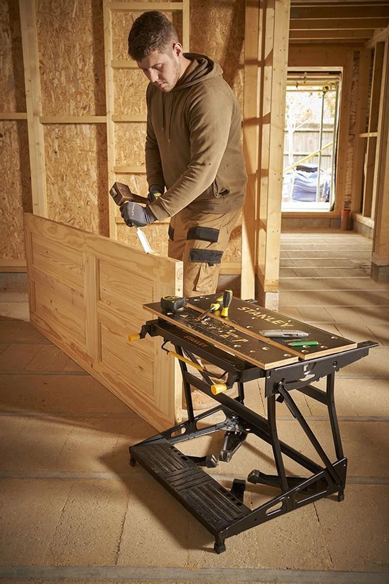 Met een draagkracht tot 250 kilogram is de STANLEY STST83800-1 een goede hulp tijdens het klussen. Dankzij zijn eenvoudig opvouwmechanisme en 1-handsklemsysteem kan je er zeker van zijn dat de kluswerkzaamheden nog makkelijker en sneller verlopen. De werkbank is te gebruiken als werkbank, bankschroef of zaagbok.