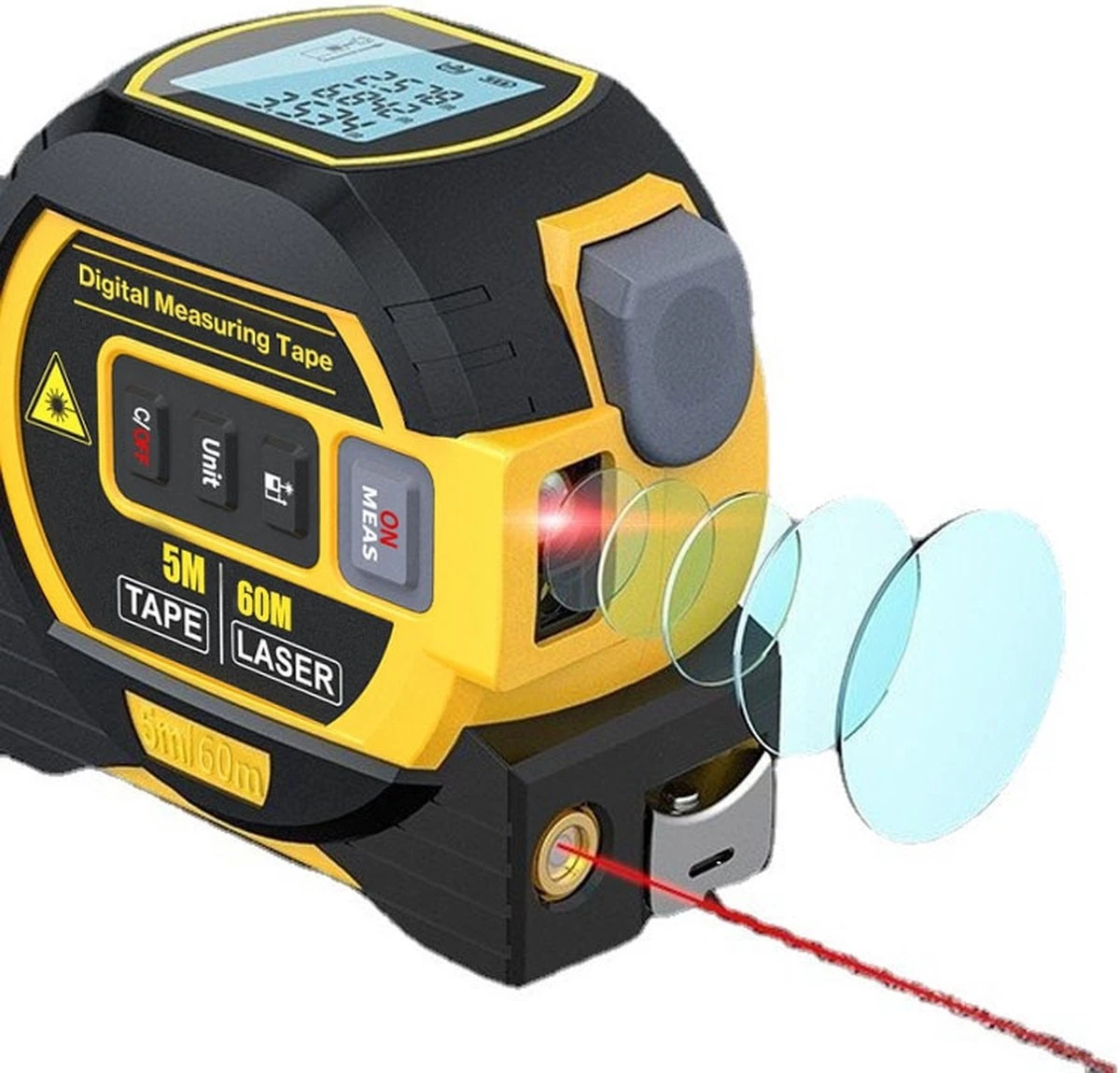 Dit compacte product is een afstandsmeter en rolmaat in 1, wat dus ideaal is voor op het werk. De laser van de afstandmeter kan ingesteld worden op precisie. Het scherm op de display geeft de huidige precisie instelling aan. De precisie van de laser kan worden aangepast van -7 tot +7 mm. Voor metingen op korte afstand is de rolmaat ideaal, die een precisie aangeeft tot wel 1,5 mm. Deze is gemaakt van ABS en TSP-kunststof, zodat het apparaat verschillende weersomstandigheden kan doorstaan.